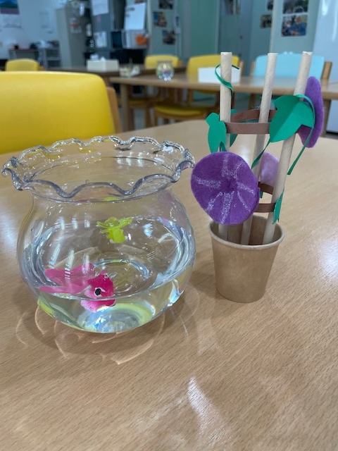 水にぷかぷかと浮かぶ金魚が、ご利用者様にも大人気です。