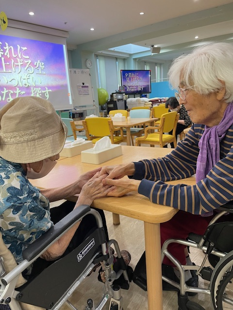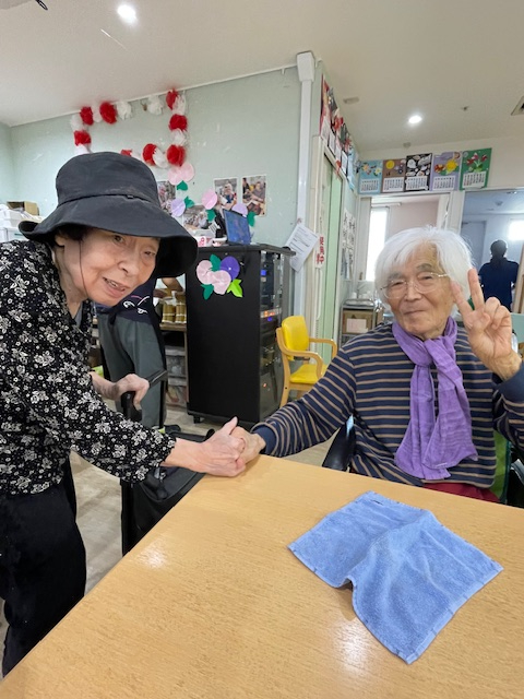 D様より先に、職員送迎でお帰りになるA様とも勿論、握手で挨拶を。