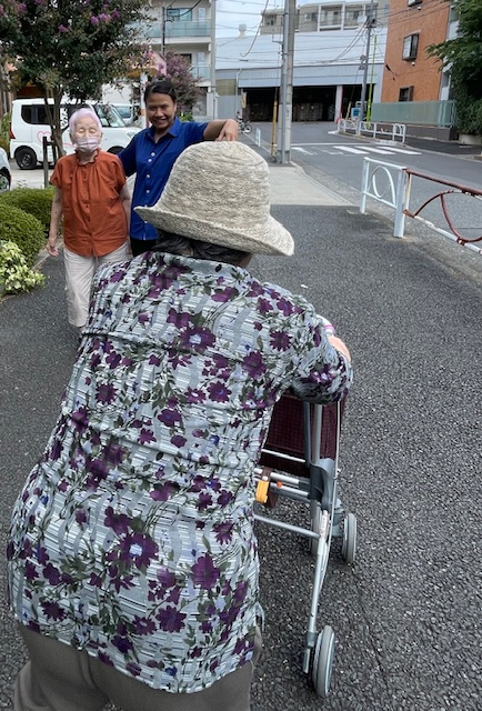 職員送迎でお迎えに行き、Y様とデイサービスを目指し歩いていると