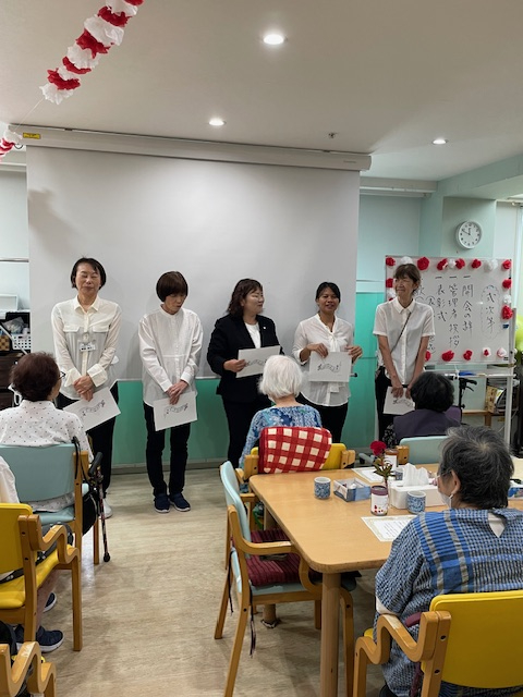歌の披露に、職員も恥ずかしやら緊張するわでありましたが、無事に歌い終わり