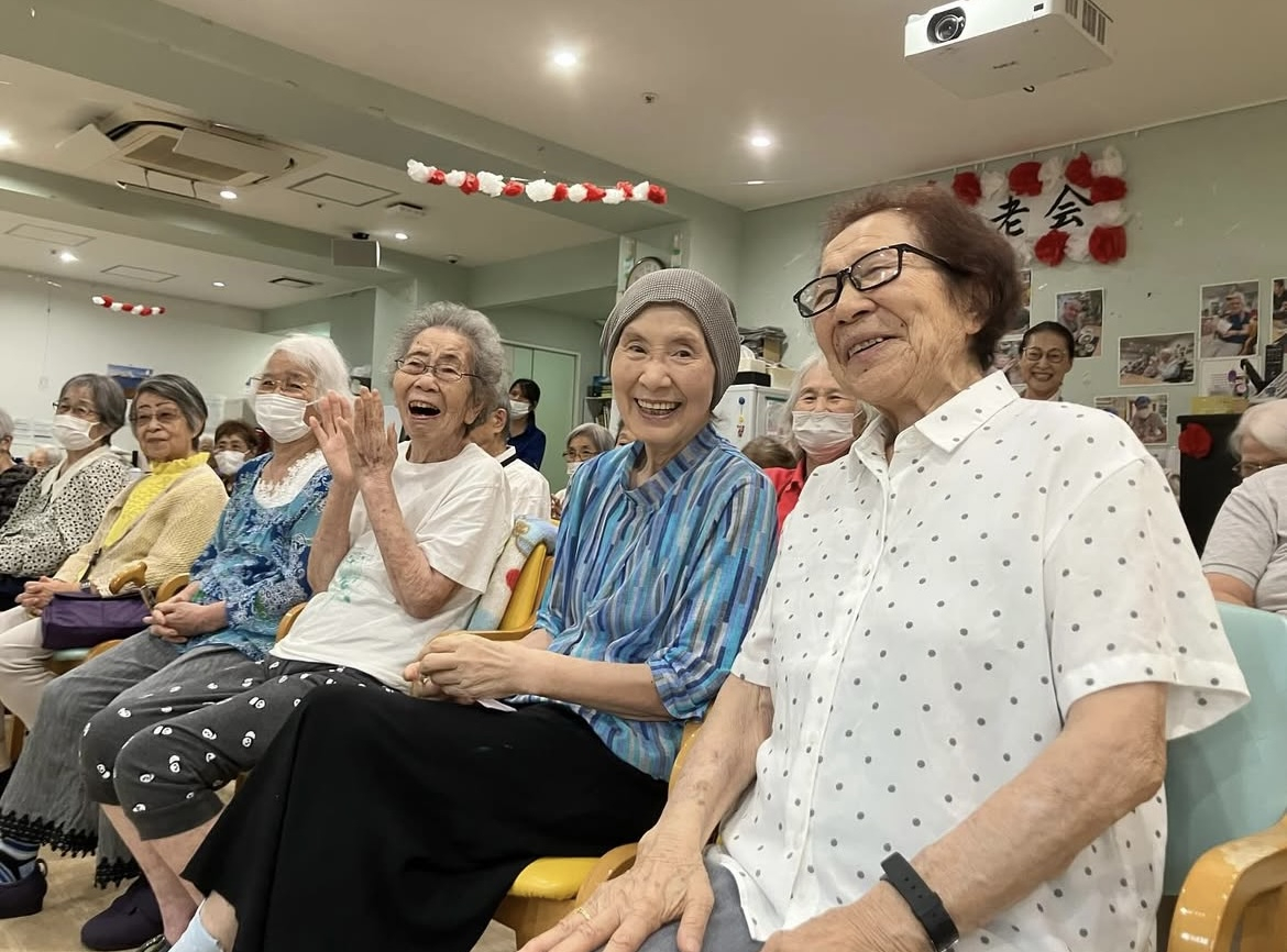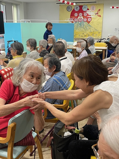 奉優デイサービス池尻「ご長寿祝賀会」では、職員からの歌のプレゼントも。