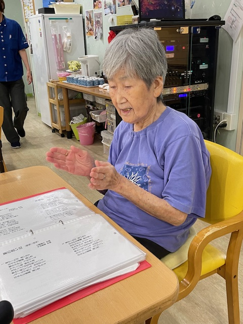 奉優デイサービス池尻では、歌を唄う時間を職員とご利用者が一緒に楽しみます。