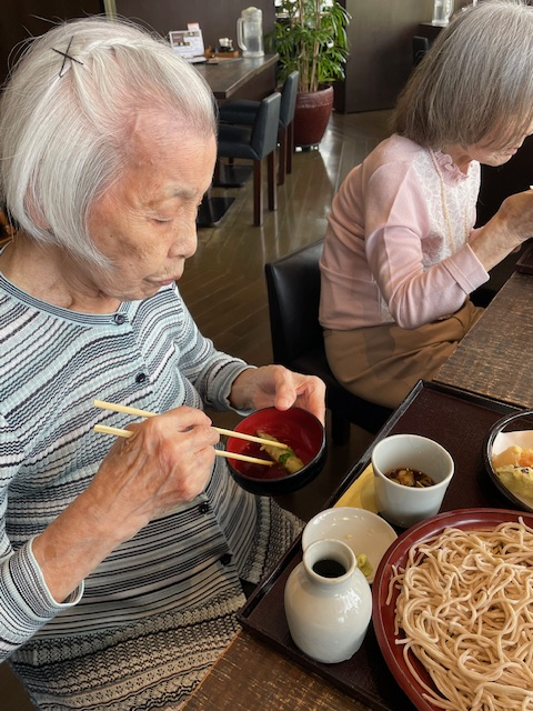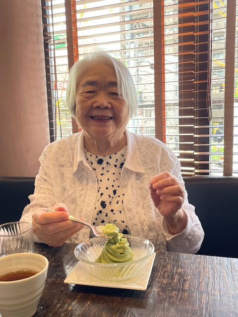 抹茶のソフトクリームを召し上がってご満悦のA様の笑顔。