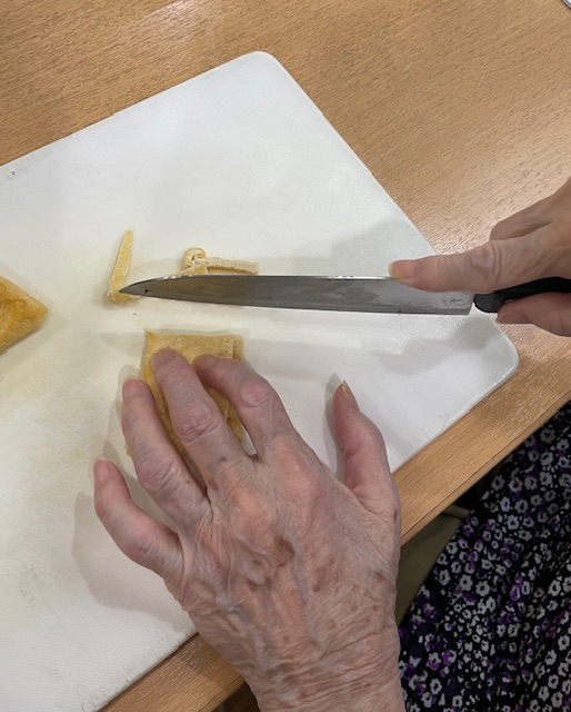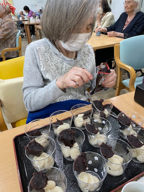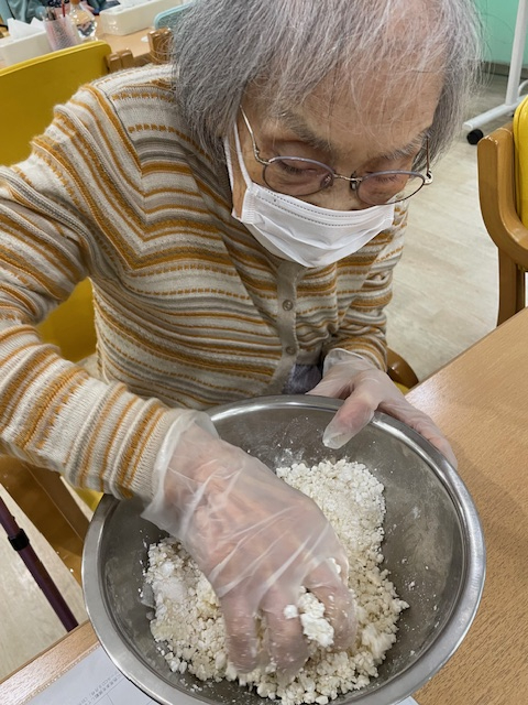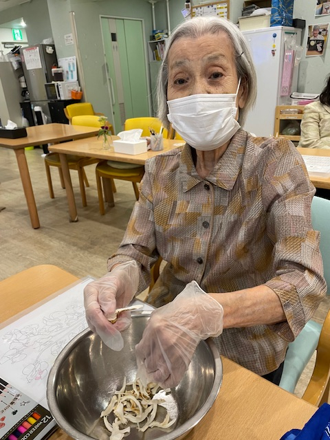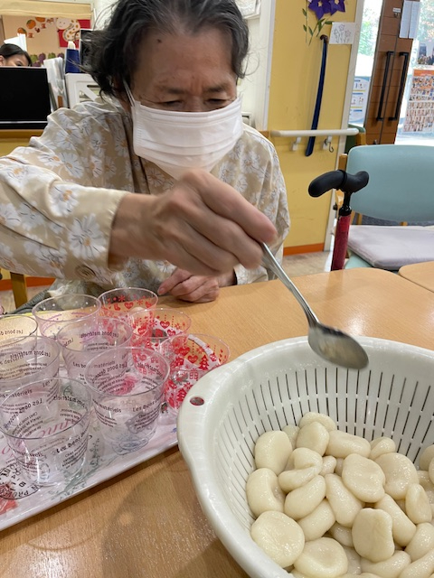 奉優デイサービス池尻では、毎月調理プログラムや手作りのおやつ作りを実施。