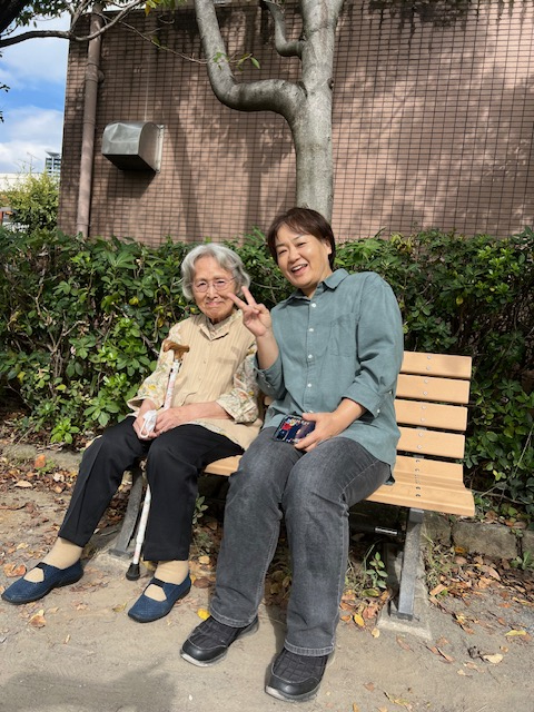 今日は、下肢機能維持を目的に外気浴を兼ねて公園まで歩いて行ってきましたよ。