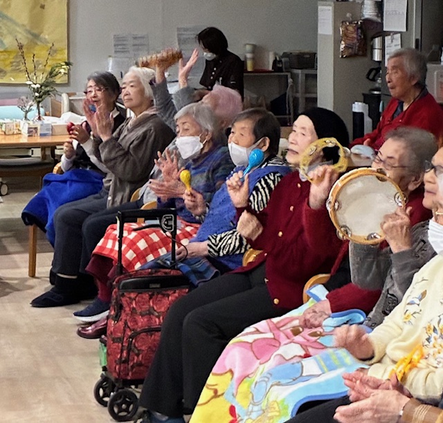一体感が感じられる至近距離で、ご利用者様も手に持つマラカスを振ったり