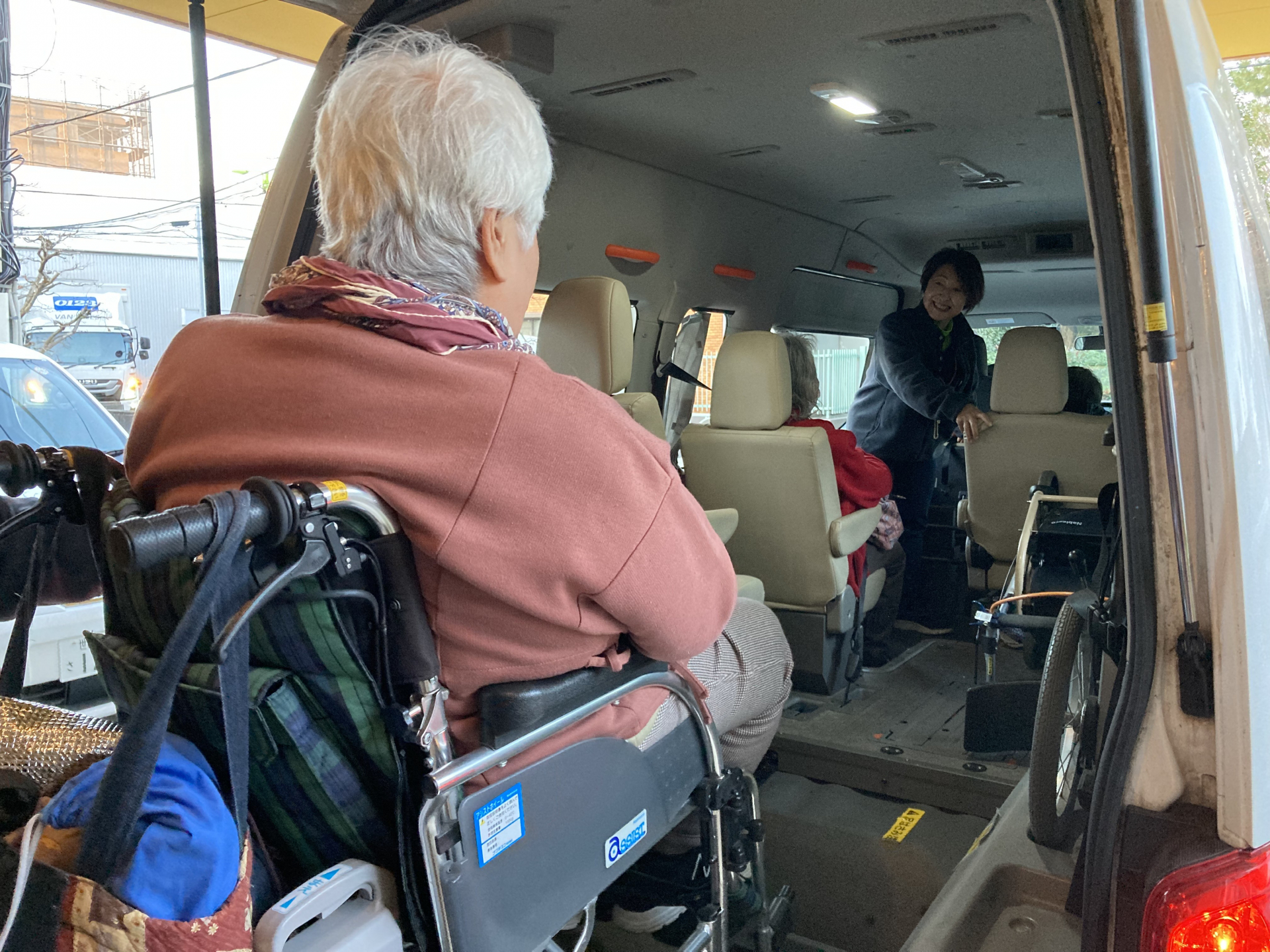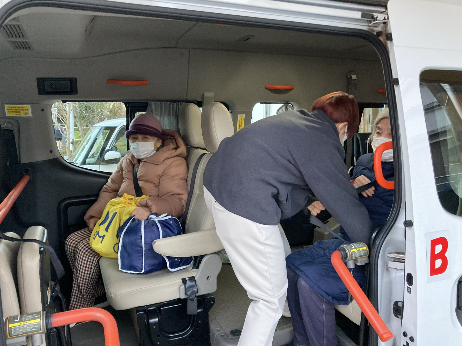 送迎車にお乗りになるとどこか安心したご様子のご利用者様たち。(笑)