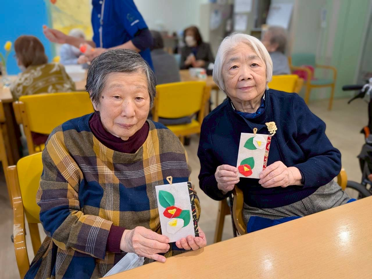 今日は先日のブログでも告知しましたが午後の活動で「椿のタペストリー作り」を行いました!