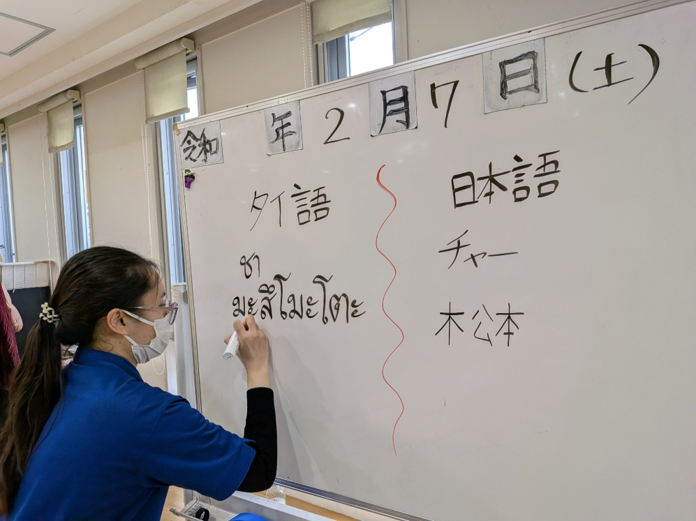 今日は技能実習生のチャーさんがタイ語教室を開いてくれました!
