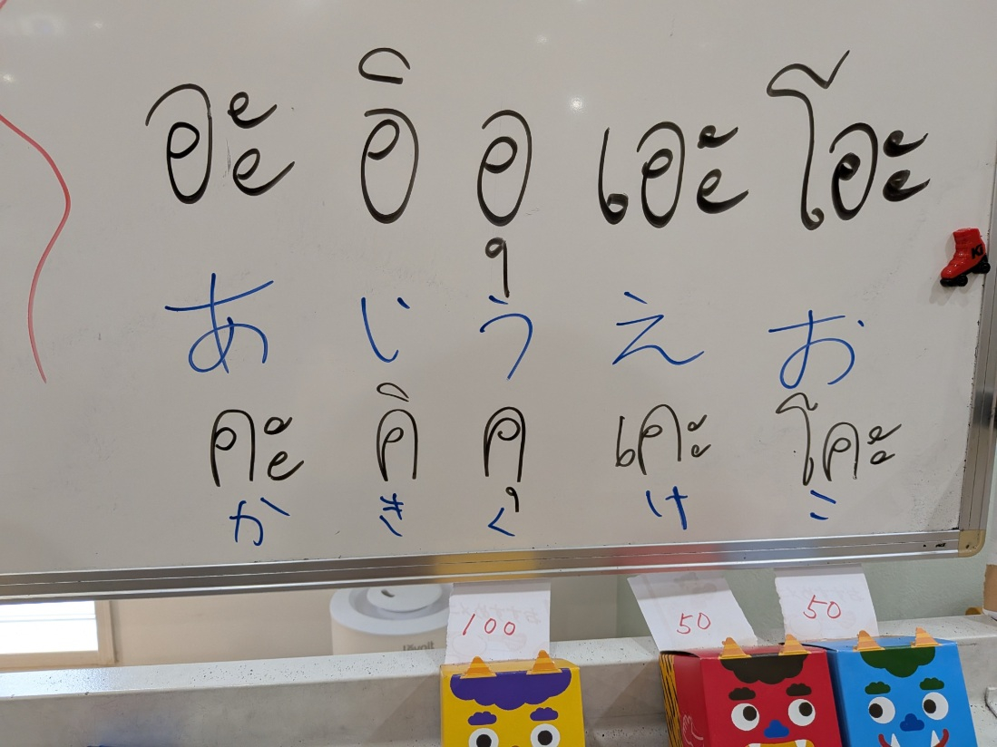 自分の名前をタイ語で書いてもらったり、数字を教えてもらったり