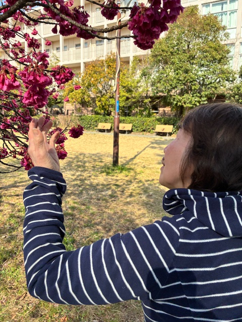 東山公園には色濃いいピンクの「カンヒザクラ」が綺麗に咲き誇っています。