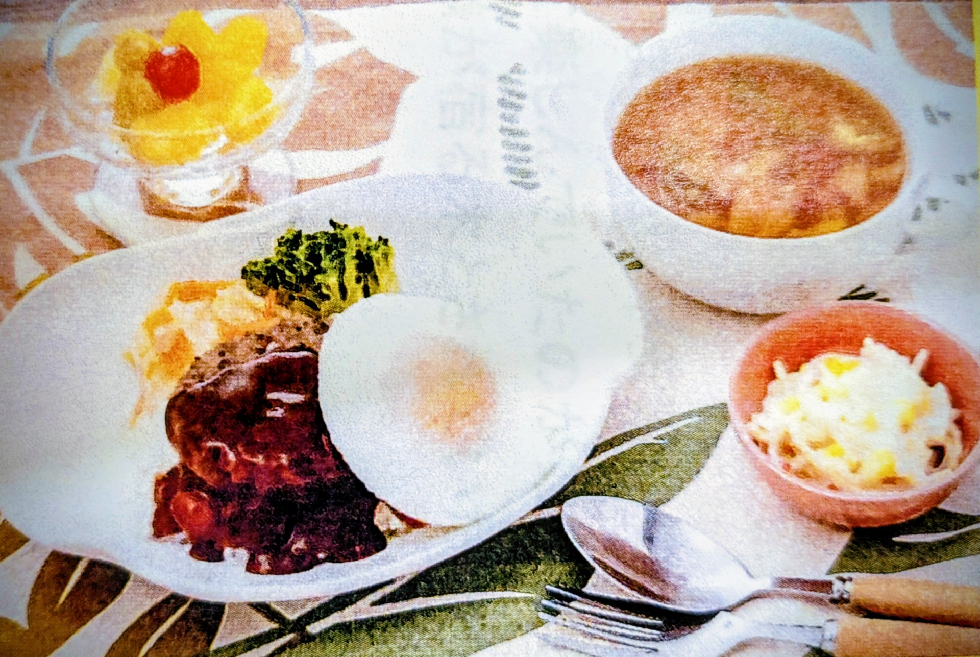 ロコモコプレート(ロコモコ・スパゲティサラダ・フルーツカクテル・スープ)