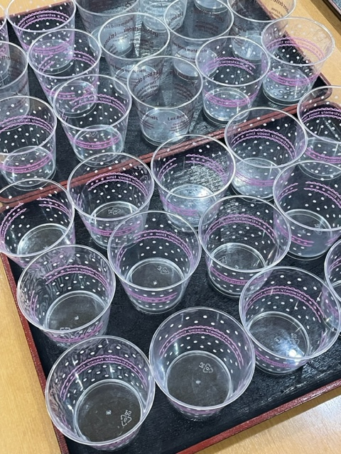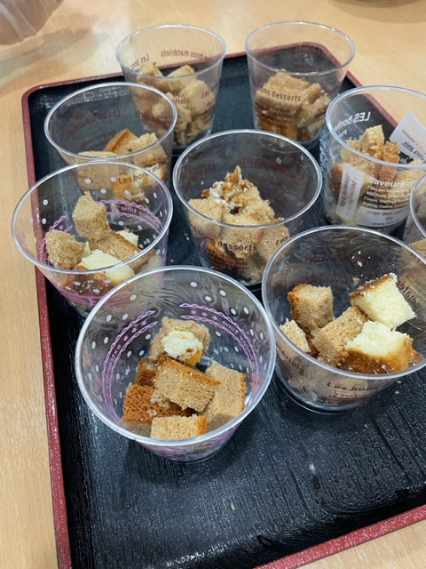 並べられたカップの中には、一口大にカットして頂いたスポンジケーキを入れて貰います。