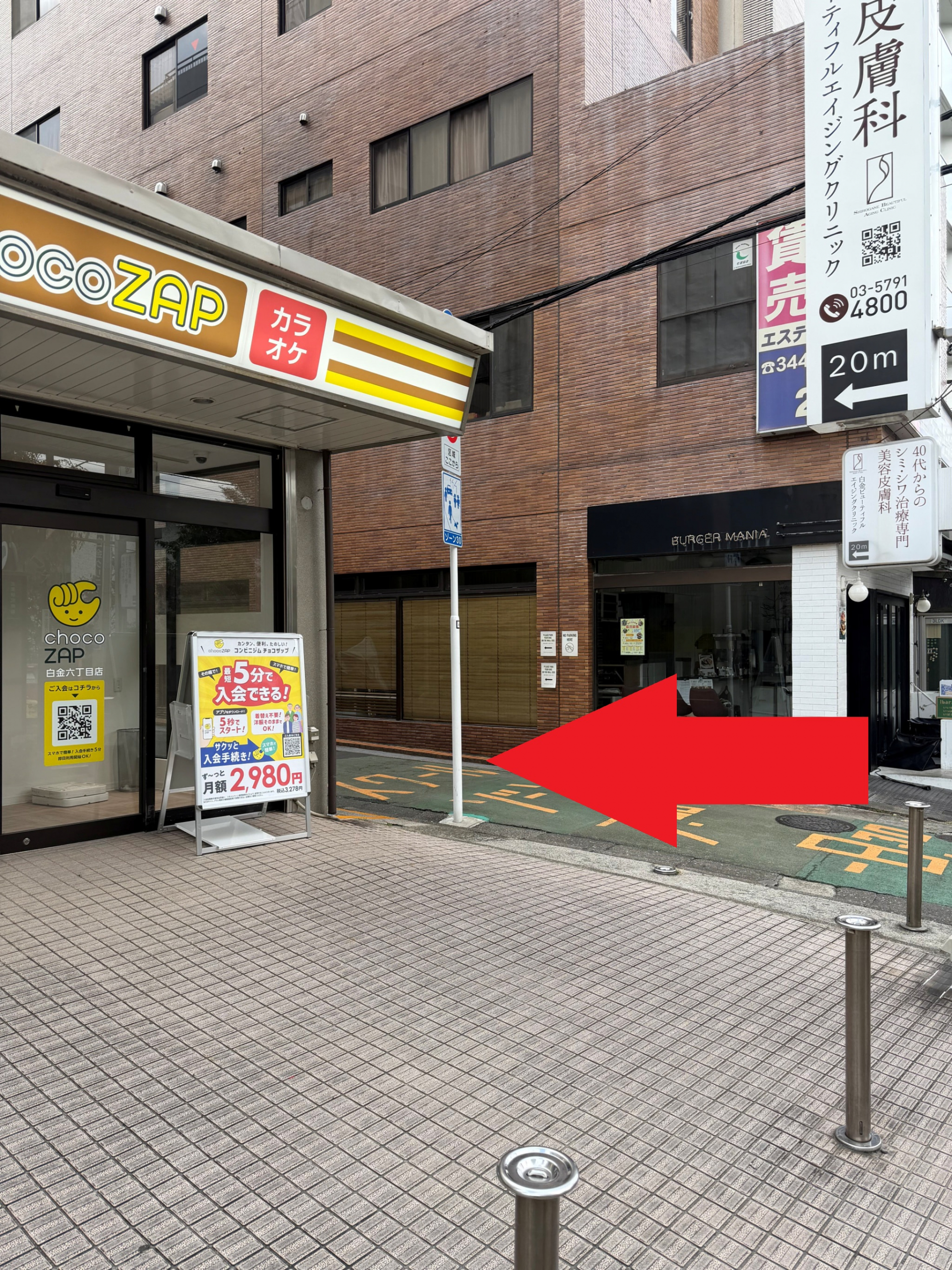 ジムとハンバーガー屋の間の道に進みます