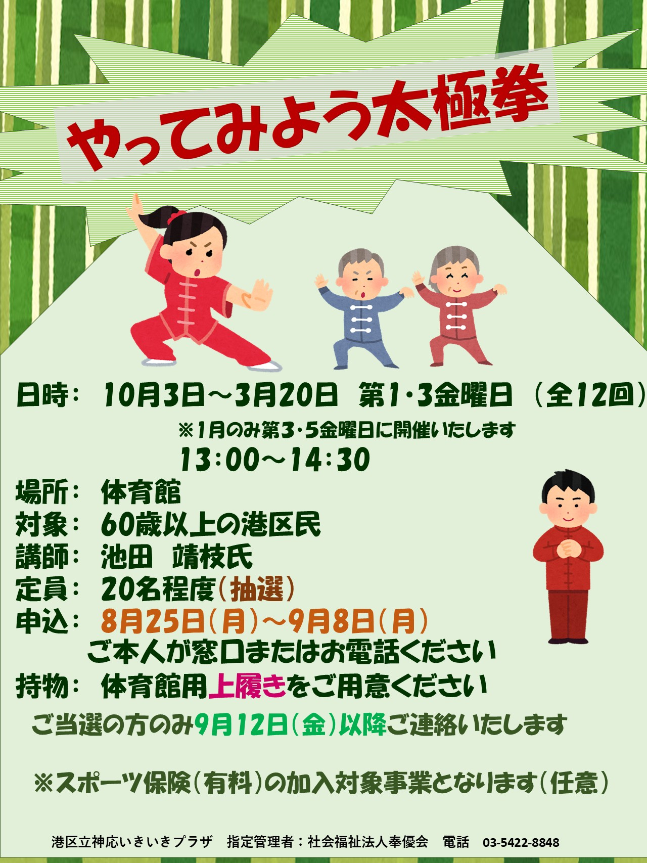 次期太極拳の募集がかかっています。