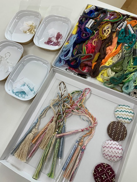 講師が人数分の糸、ビーズ、図案を用意し、あとは始めるばかりです。