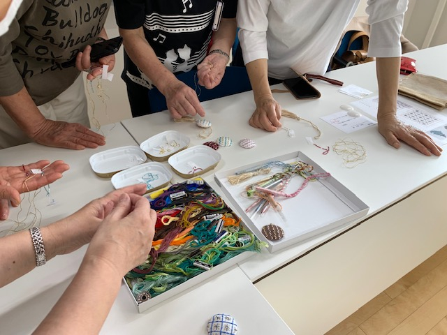 講師が人数分の糸、ビーズ、図案を用意し、あとは始めるばかりです。