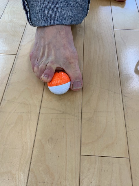 もう一つはゴルフボールを使って足裏を鍛えます。