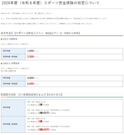 それに伴い、2026年度スポーツ安全保険 加入手続き開始いたしました。