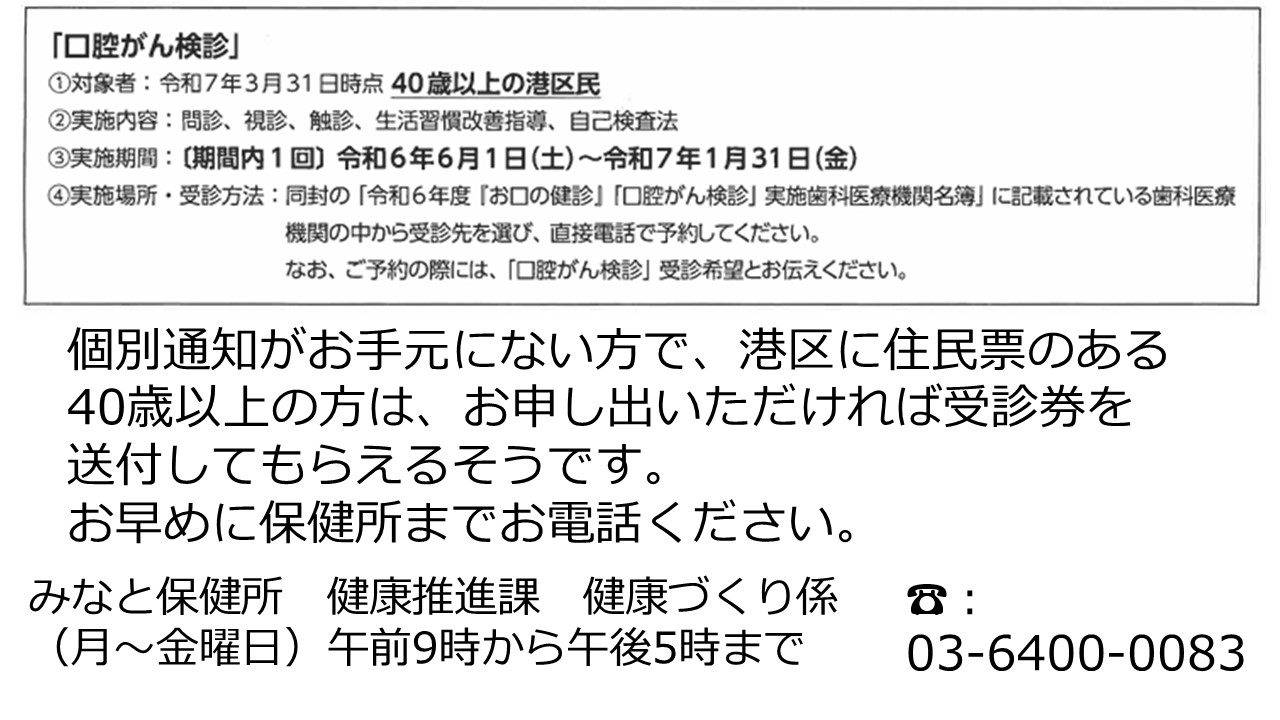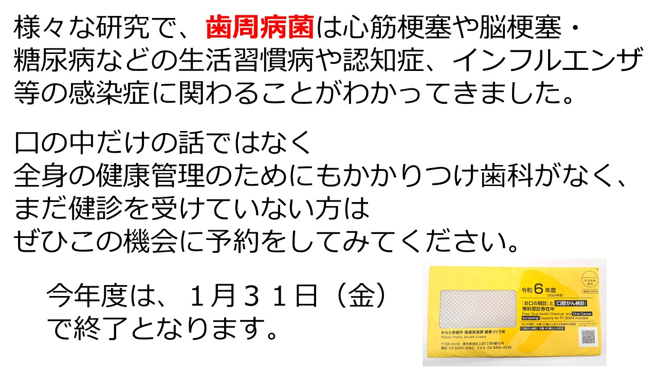 2025.01.17 お知らせ もうすぐ終了です。 ~港区歯科検診~ Tweet シェアする 前の記事 2025.01.18 お知らせ 折り紙サロン☆ 次の記事 2025.01.16 お知らせ 今日も楽しくコーラス教室! 一覧へ戻る