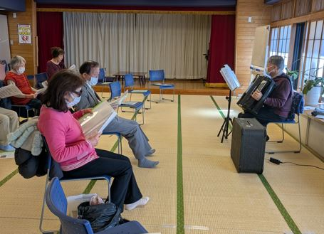 本日は月に一度の「アコーディオンで歌いましょう」開催の日です。