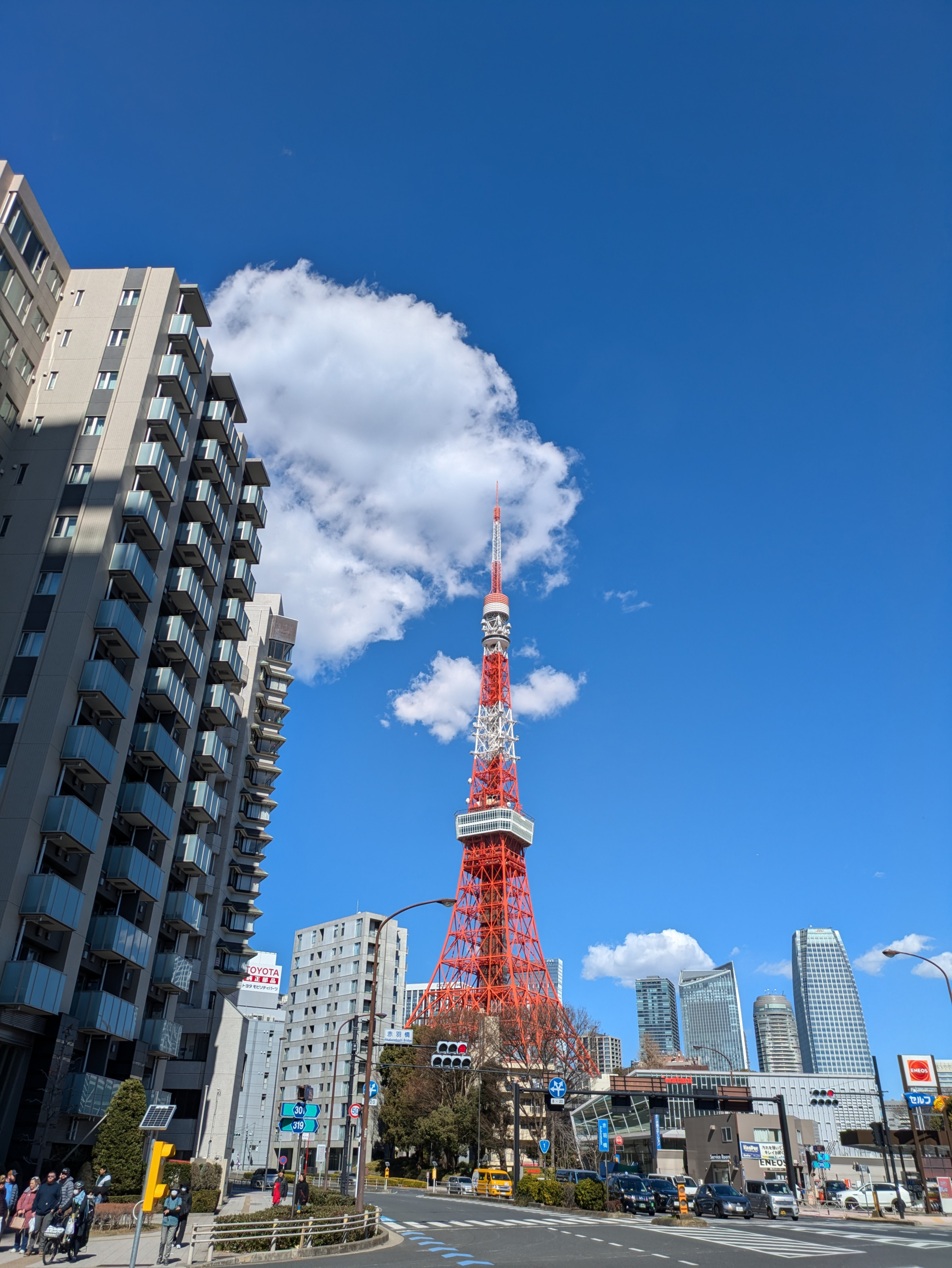 赤羽橋駅からふと見上げると、蒼い空に東京タワーが映えて思わずパチリ✧📷✧