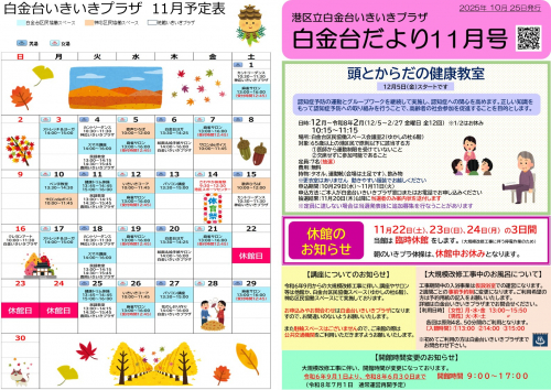 2025.11.09 NEW 10/30 秋の演芸際のご報告♪ 活動報告 2025.11.04 11/4 民謡教室【後半】 活動報告 2025.11.04 11/4 民謡教室【前半】 活動報告 2025.11.04 カントリーダンスを開催しました 活動報告 #白金台いきいきプラザ #カントリーダンス #ダンス 2025.11.04 白金台漢字クイズ! 活動報告 2025.11.03 白金台漢字クイズ! 活動報告 2025.11.02 霜月に入りましたね♪ お知らせ 2025.10.28 健康トリム体操を開催しました 活動報告 #白金台いきいきプラザ #トリム体操 #運動 2025.10.25 白金台だより11月号 お知らせ 2025.10.22 白金台漢字クイズ!⑥ 活動報告 2025.10.20 『花のしおり作り』を楽しみました 活動報告 2025.10.19 10/14(火)民謡教室【後半】 活動報告 2025.10.19 10/14(火) 民謡教室【前半】 活動報告 2025.10.19 10/19(日) クレヨンアートサロン 活動報告 2025.10.19 白金台漢字クイズ!⑤ 活動報告 1 2 3 … 32
