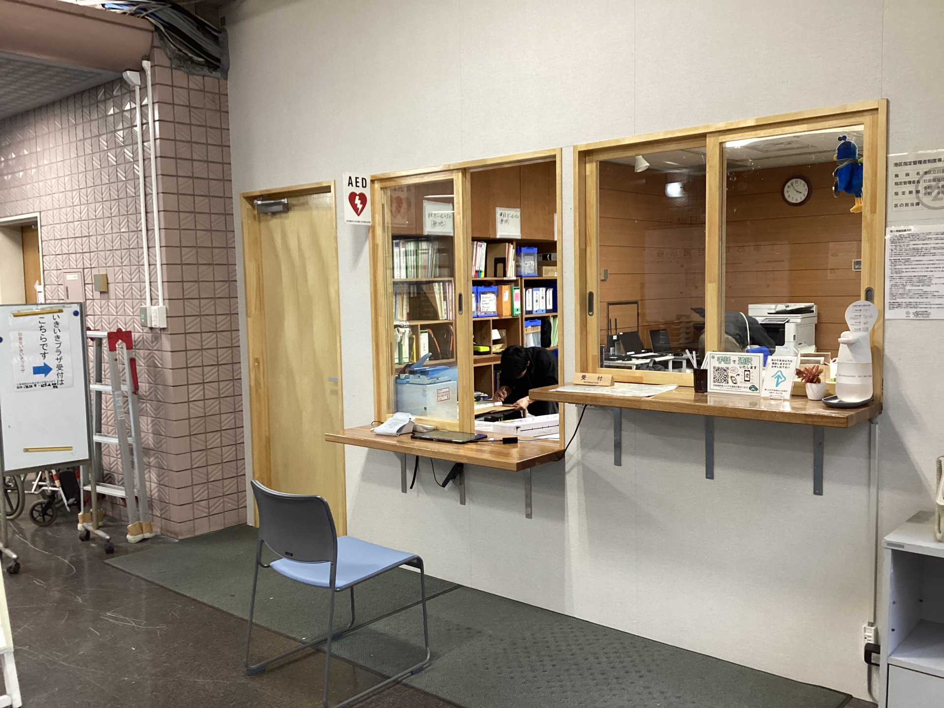 受付の場所が変わりました。正面入口入って、右手に変わりました。