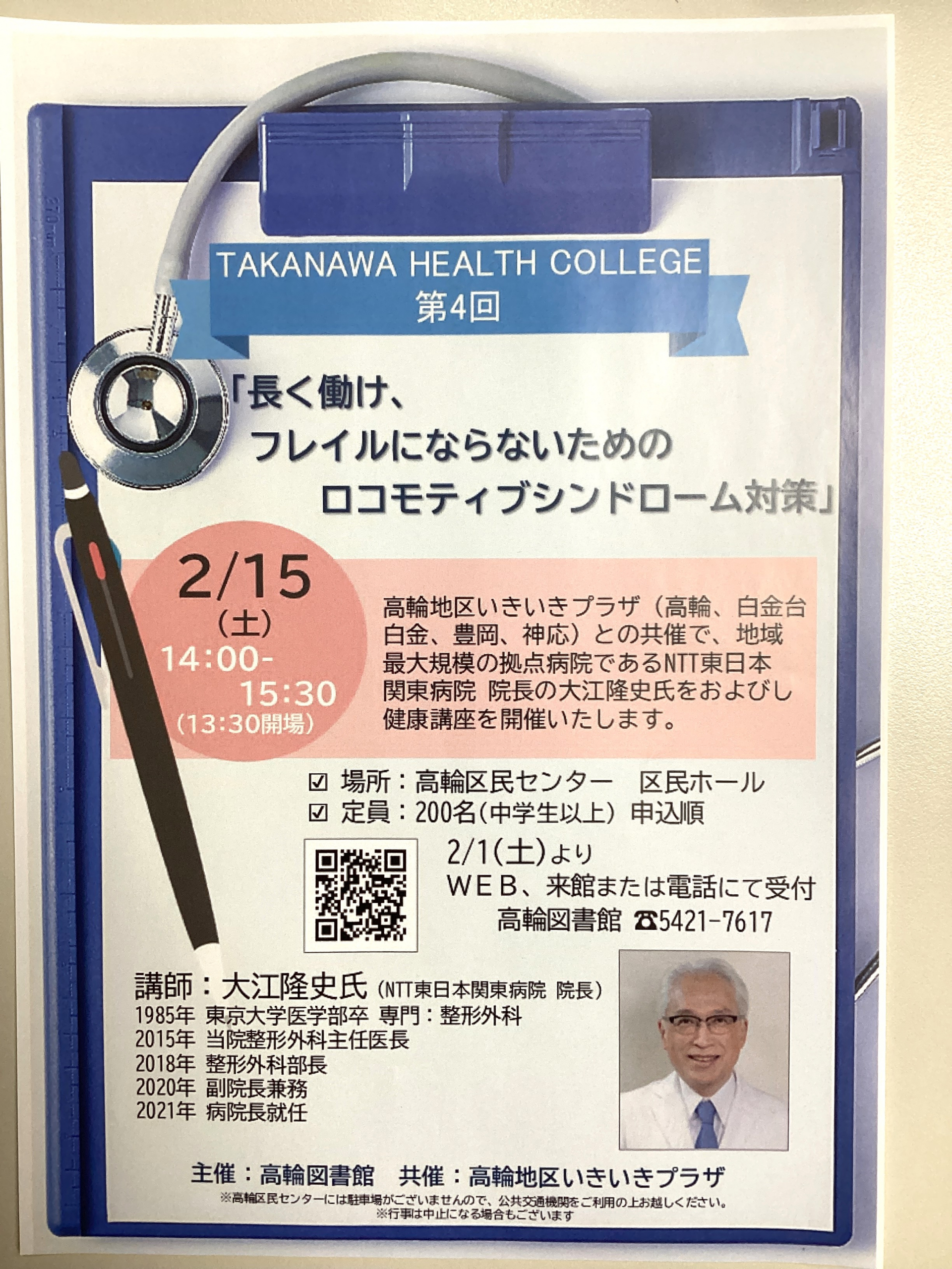 2/15(土)14:00~15:30 TAKANAWA HEALTH COLLEGE 第4回 ご案内!