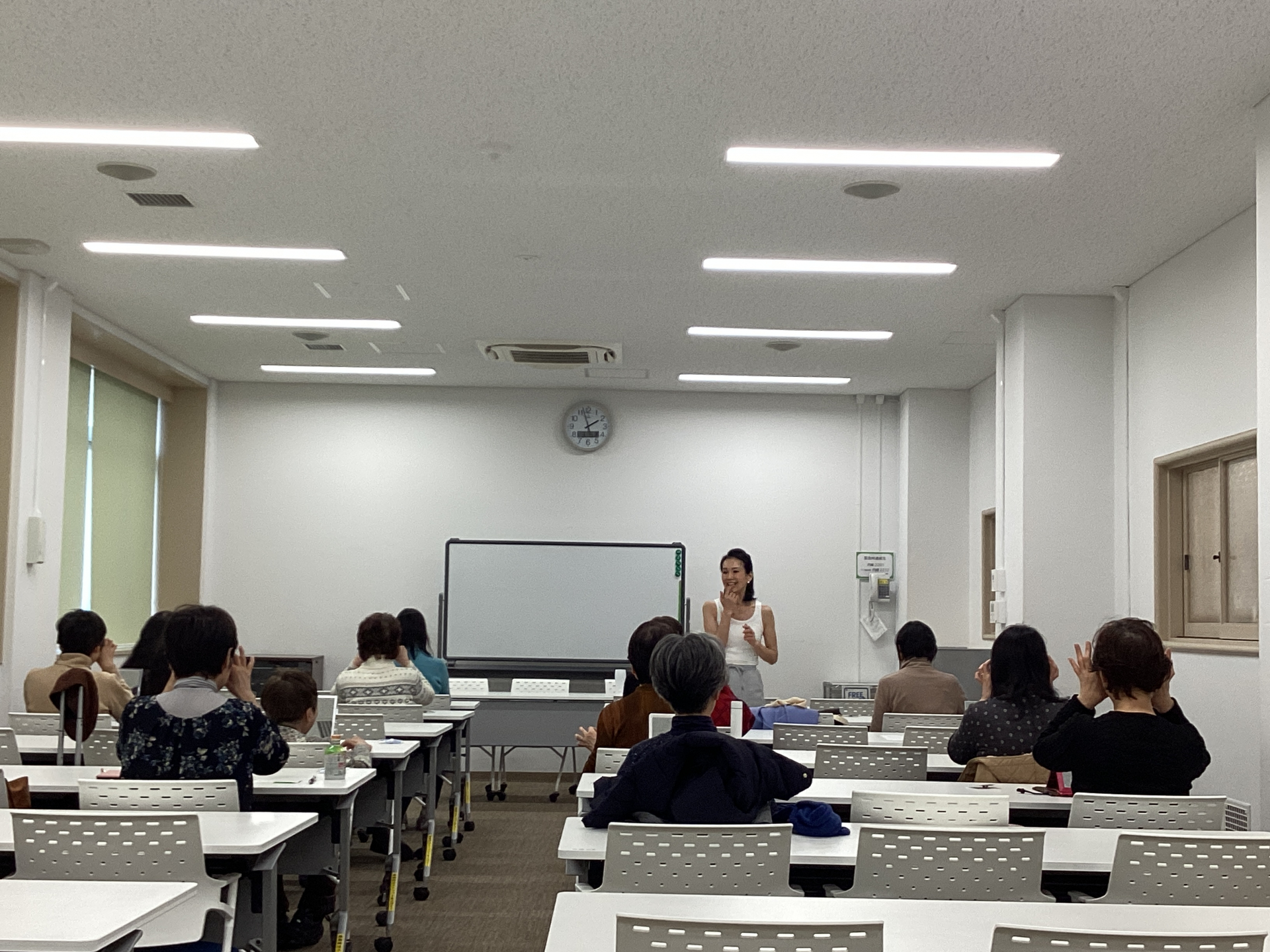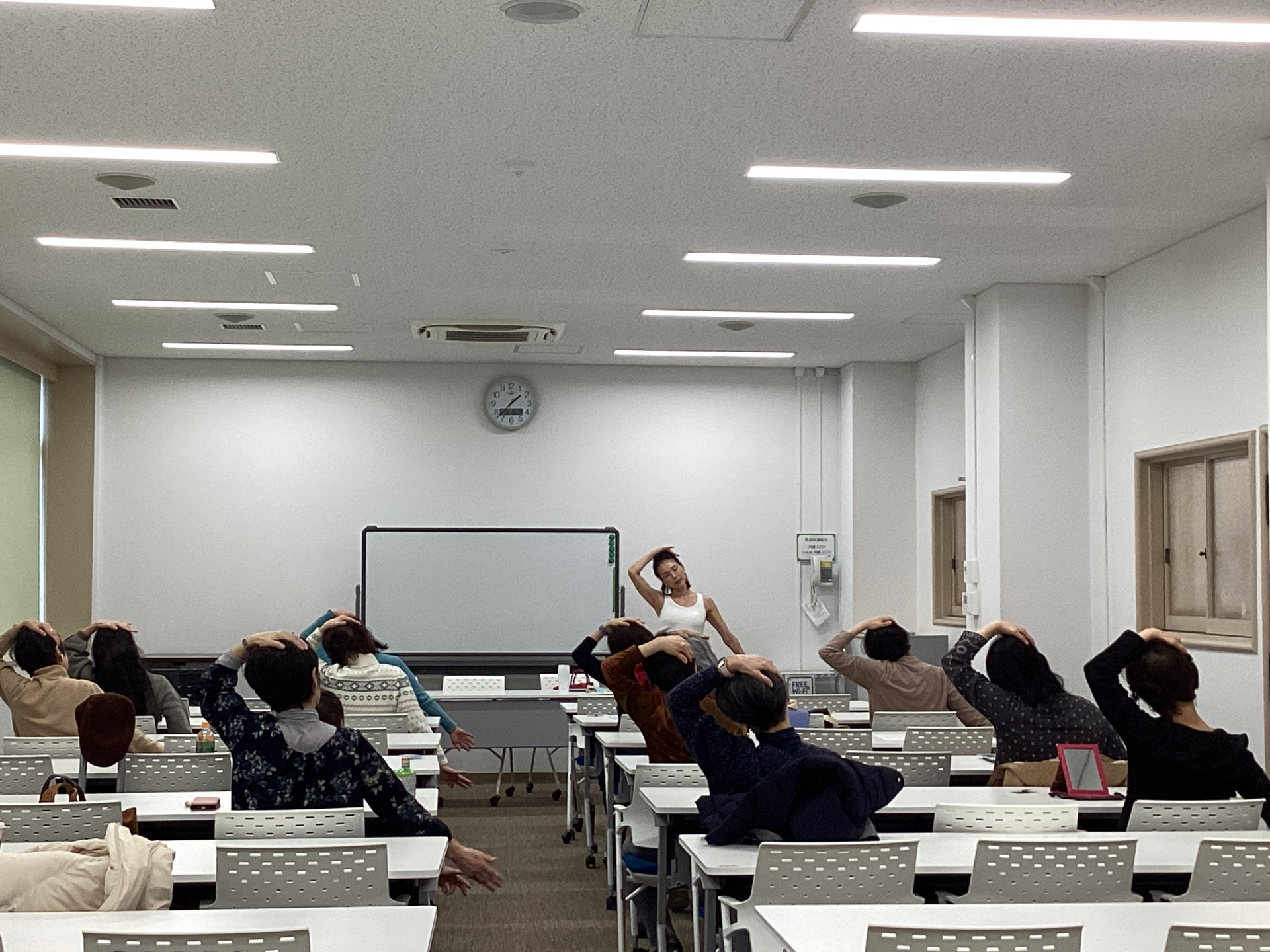 本日、顔ヨガ教室を開催しました。5回コースの最終回、総集編となりました。