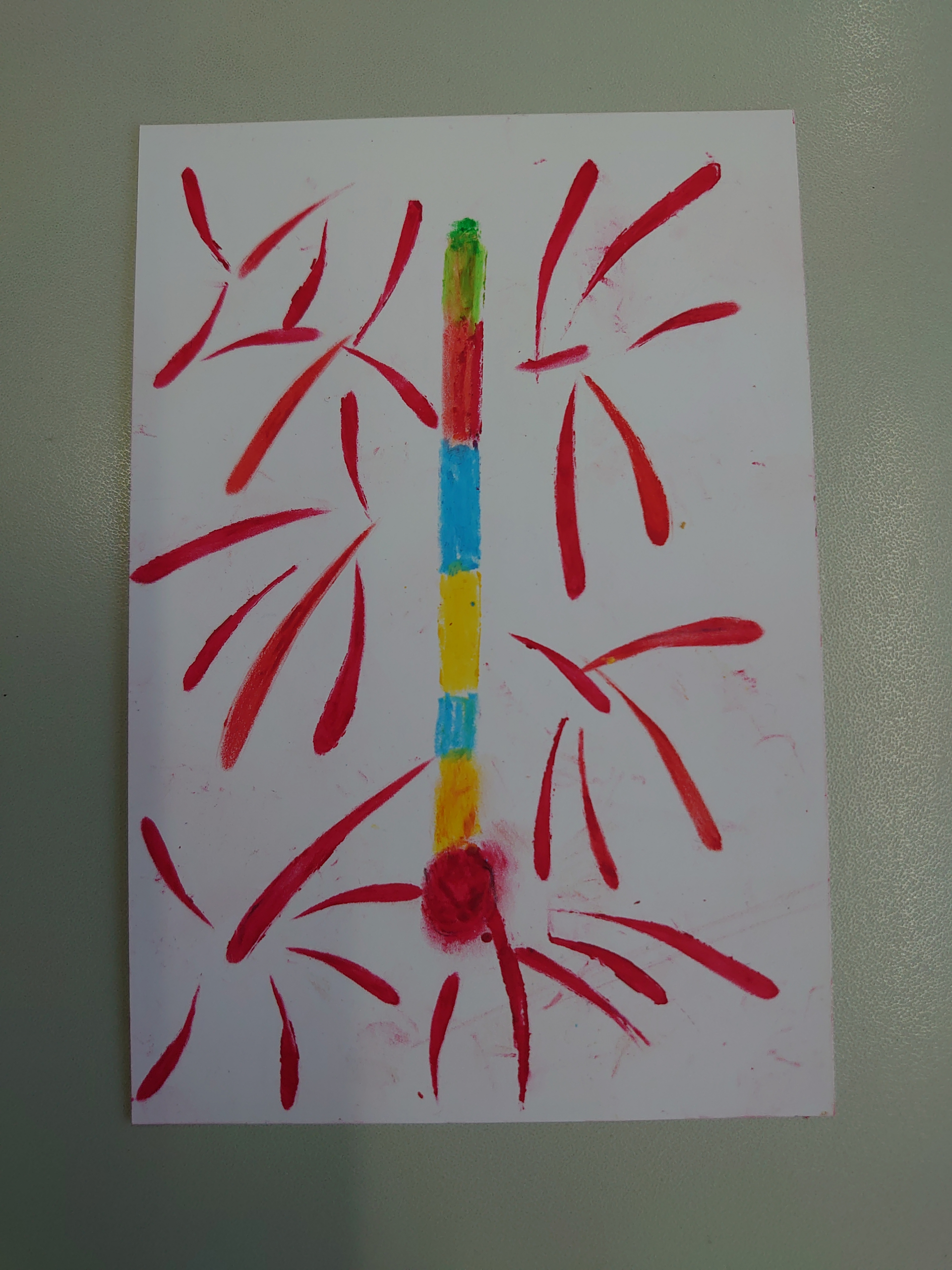 砂浜のきれいな景色、弾ける火花の表現がとても素敵です!