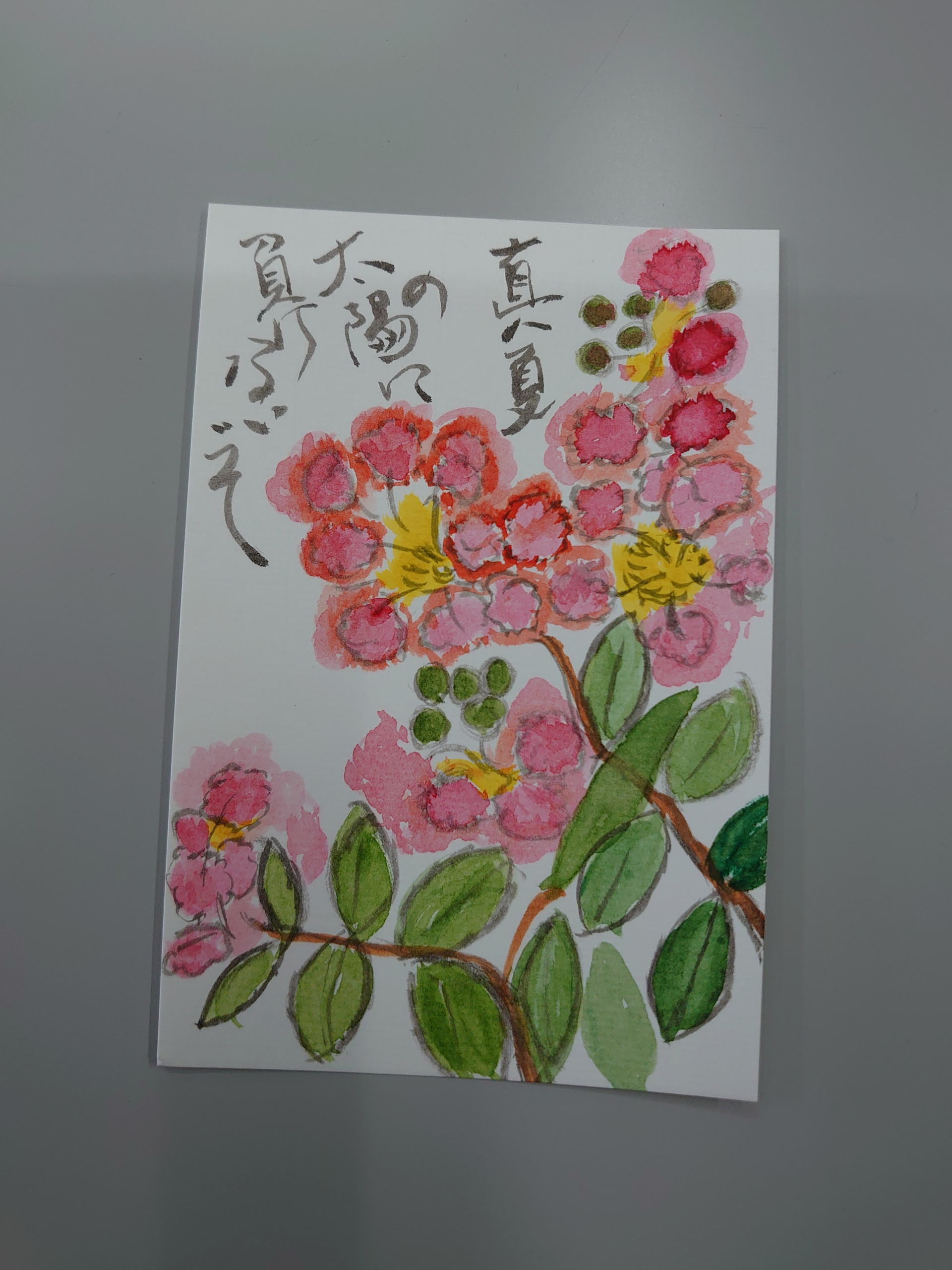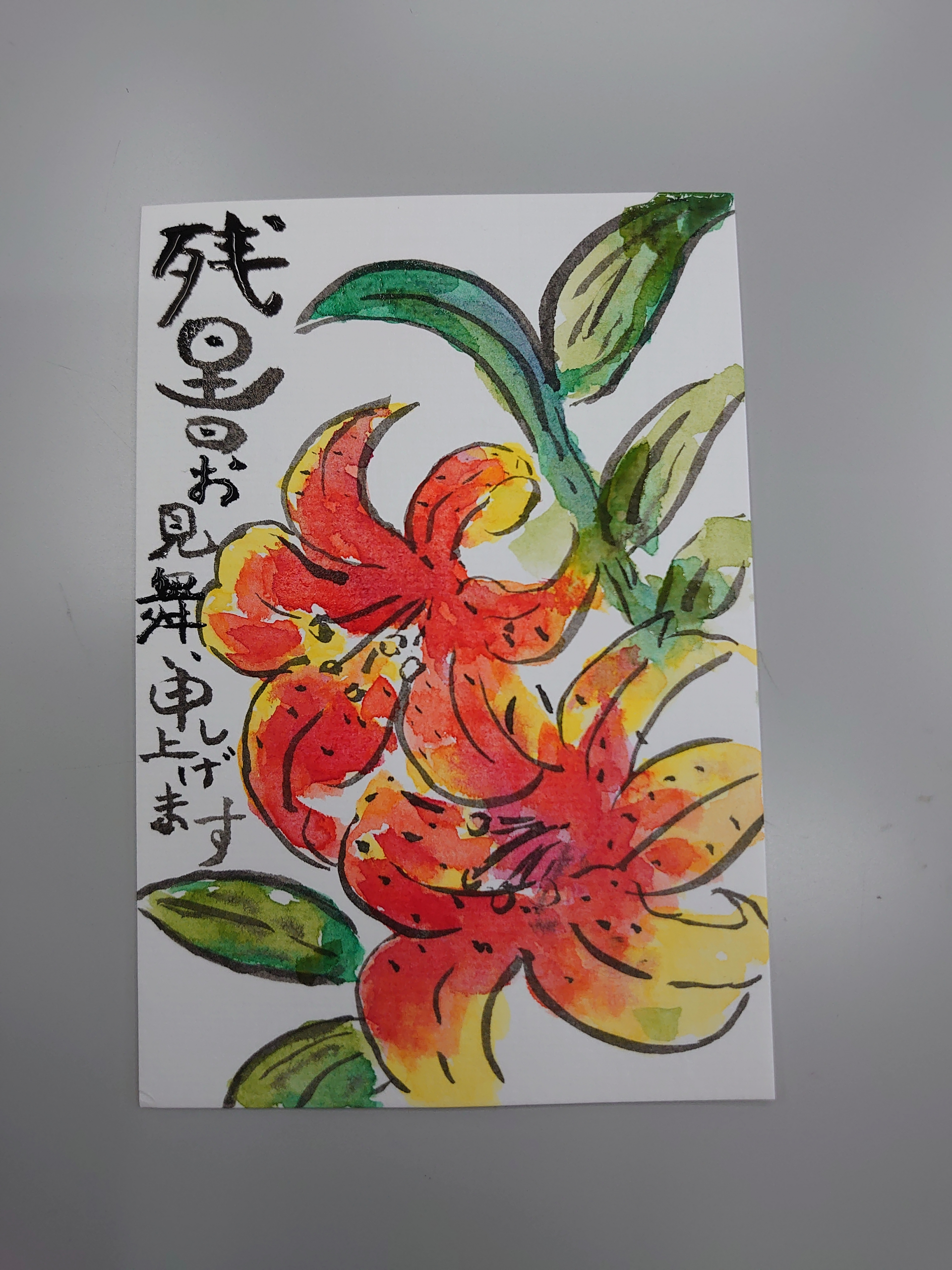 今回は、テッポウユリ、カラー、サルスベリの花の絵を描かれていました。