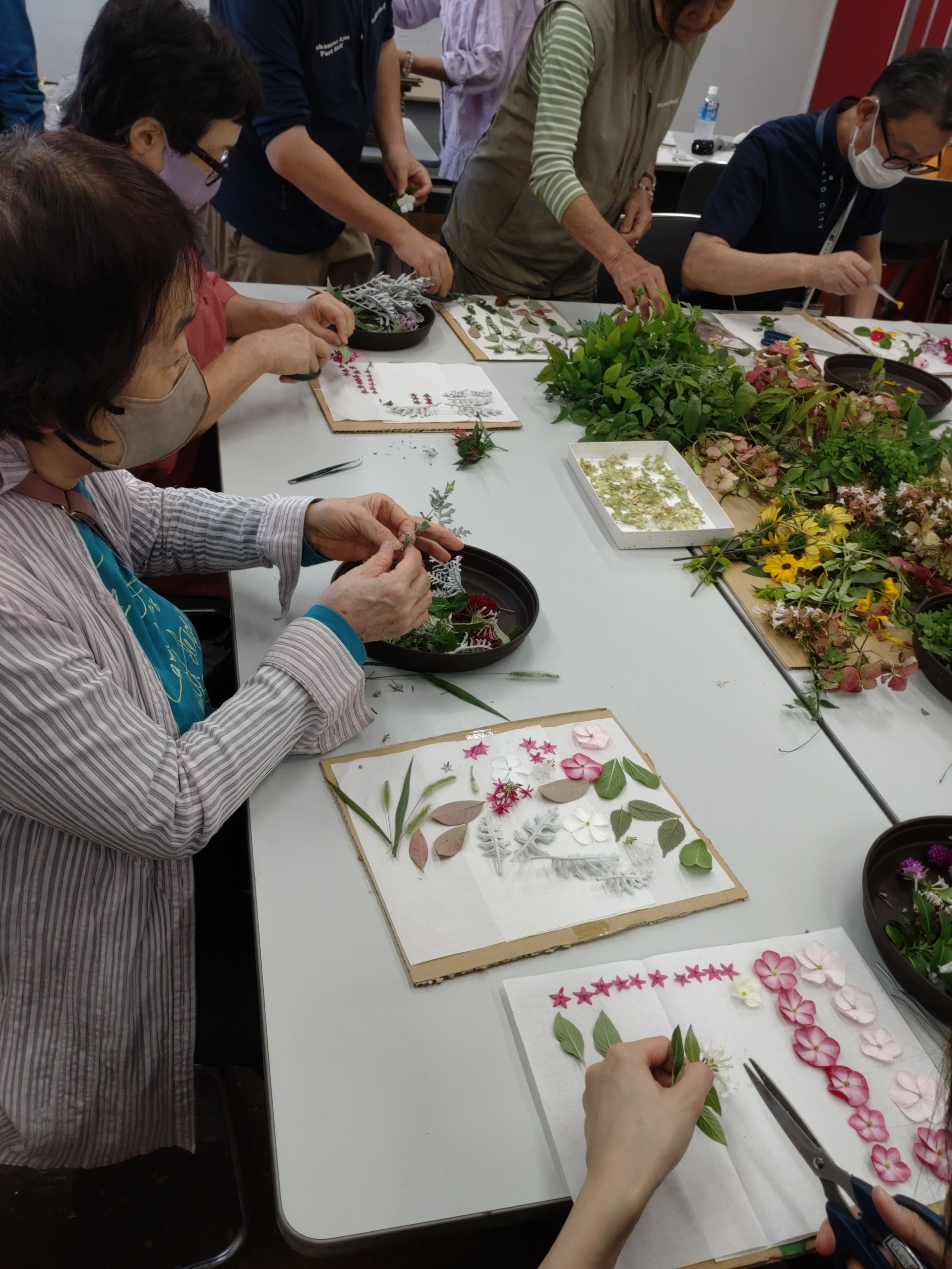 花摘みをした後は白金いきいきプラザに戻って押し花を作りました。