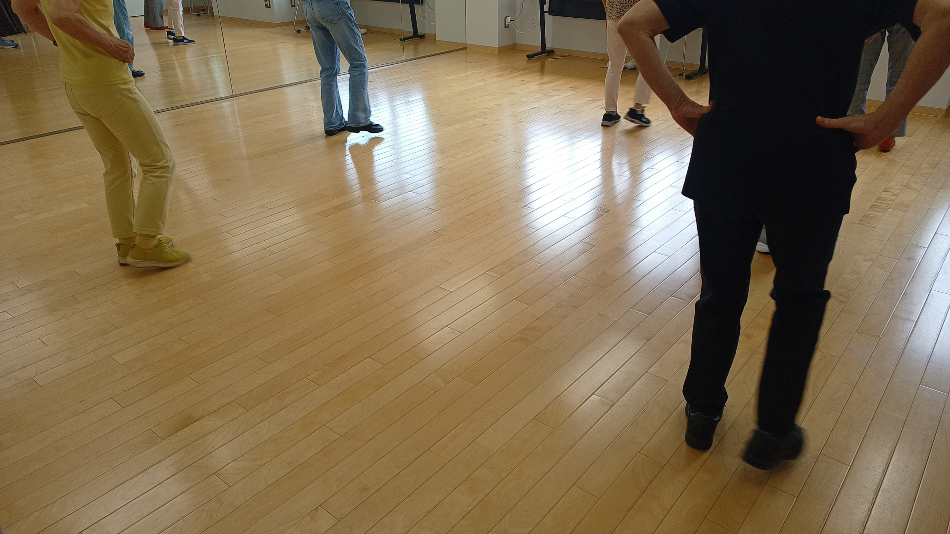 本日は初心者クラスの火曜日です。初めてでも講師の方がステップの踏み方を教えてくれますので、少しずつでもステップを踏めるようになります。曲に合わせて足の動きを覚えるため脳トレ効果も期待できます。1時間のレッスンは少し汗ばむくらいの運動量です。