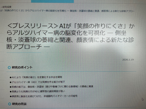 2026.01.28 薬の過剰摂取にご注意を! ニュース 2026.01.28 単なる道具から対話するAIへの変貌 ニュース 2026.01.28 家族を介護している人のメンタルヘルスとQOL ニュース 2026.01.28 災害用井戸の活用 ニュース 2026.01.28 血管ステントの新たな開発 ニュース 2026.01.28 「糖質疲労」とは? ニュース 2026.01.28 コーヒーのカフェインと認知症抑制 ニュース 2026.01.28 「呼吸サルコペニア」って何? ニュース 2026.01.28 AIコンパニオンって何? ニュース 2026.01.21 木造住宅の耐震性評価ソフトとは? ニュース 2026.01.21 切り絵作品 活動報告 2026.01.21 笑顔とアルツハイマー病 ニュース 2026.01.21 ノンアル飲料で減酒 ニュース 2026.01.21 睡眠とリカバリーウエア ニュース 2026.01.21 運動が脳を守る? ニュース 1 2 3 4 5 … 110