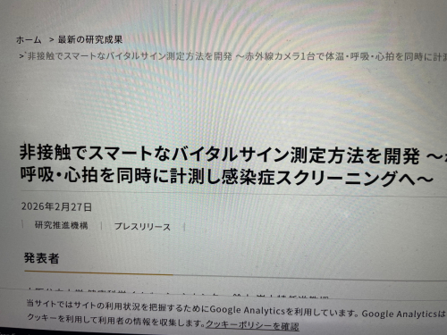 2026.03.04 火曜午後の歌パーク お知らせ 2026.03.04 水タバコと一酸化炭素中毒 ニュース 2026.03.04 亜鉛は不足していませんか? ニュース 2026.03.04 手助けしすぎない、「人を育てる」運転アシスト技術の開発 ニュース 2026.03.04 社会的孤立と遺伝的背景 ニュース 2026.03.04 同じ食事でもエネルギー吸収は異なる? ニュース 2026.03.04 赤外線カメラで体温・呼吸・心拍を同時に計測 ニュース 2026.03.04 慢性閉塞性肺疾患とフレイルの深い関係 ニュース 2026.03.04 栄養素摂取パターンと死亡率との関係 ニュース 2026.03.04 加齢に伴う血液変化と大動脈瘤 ニュース 2026.03.04 高齢者心不全と3種類のフレイル評価 ニュース 2026.03.04 アストロサイトって何? ニュース 2026.03.04 血液でがん治療の効果予測 ニュース 2026.02.27 高齢者が要介護にならないためには、「開放性」と「勤勉性」が大切 ニュース 2026.02.27 膝が曲げにくい人のためのチェアヨガ お知らせ 1 2 3 4 5 6 … 119