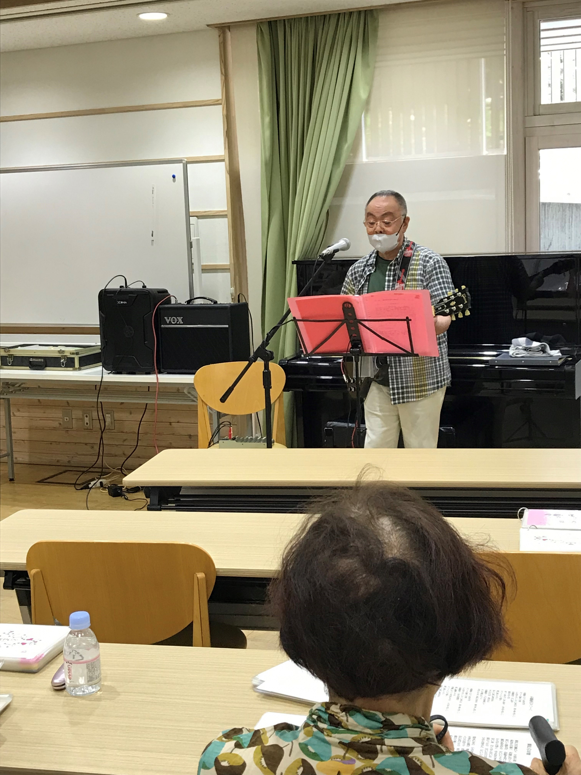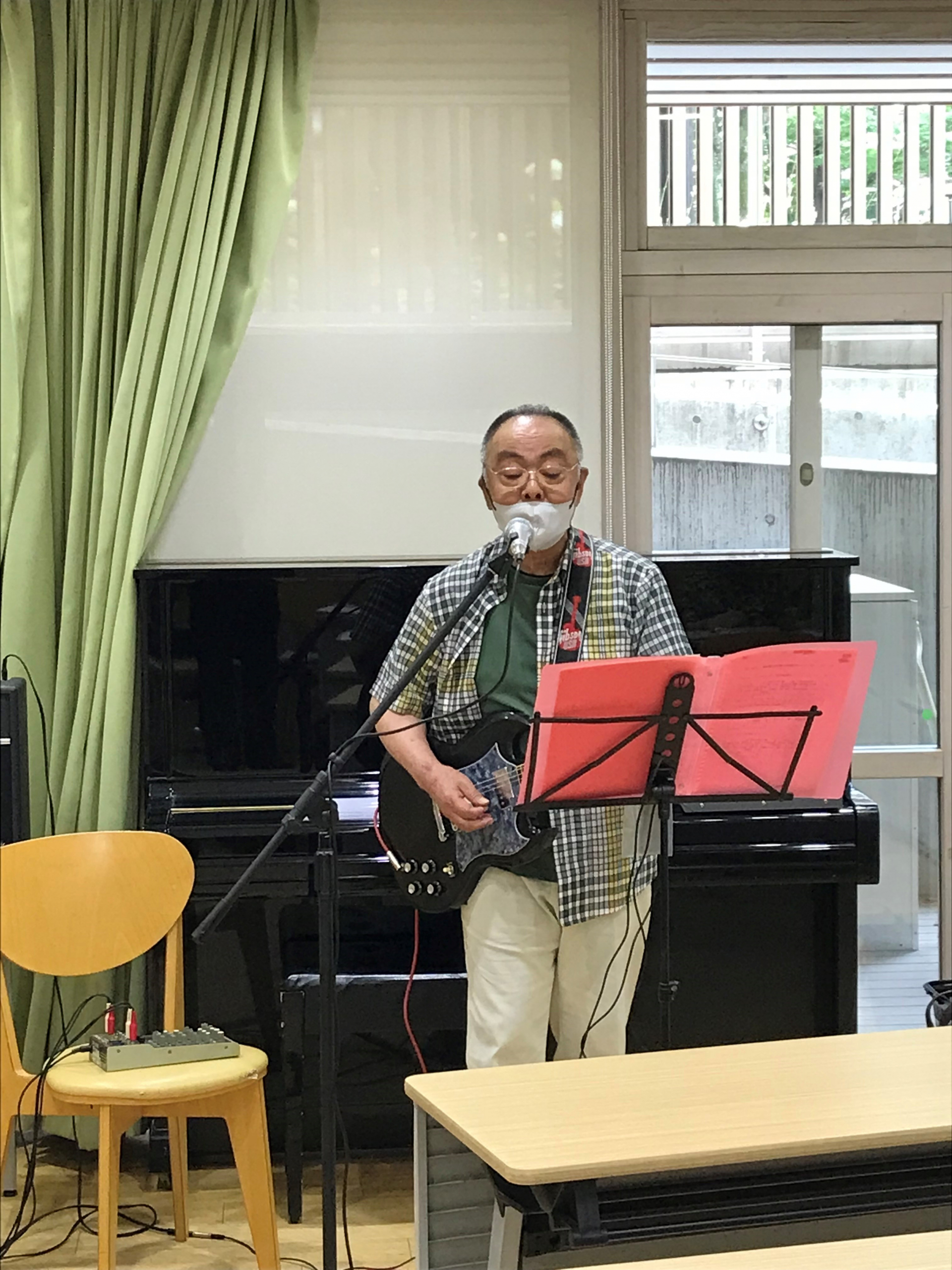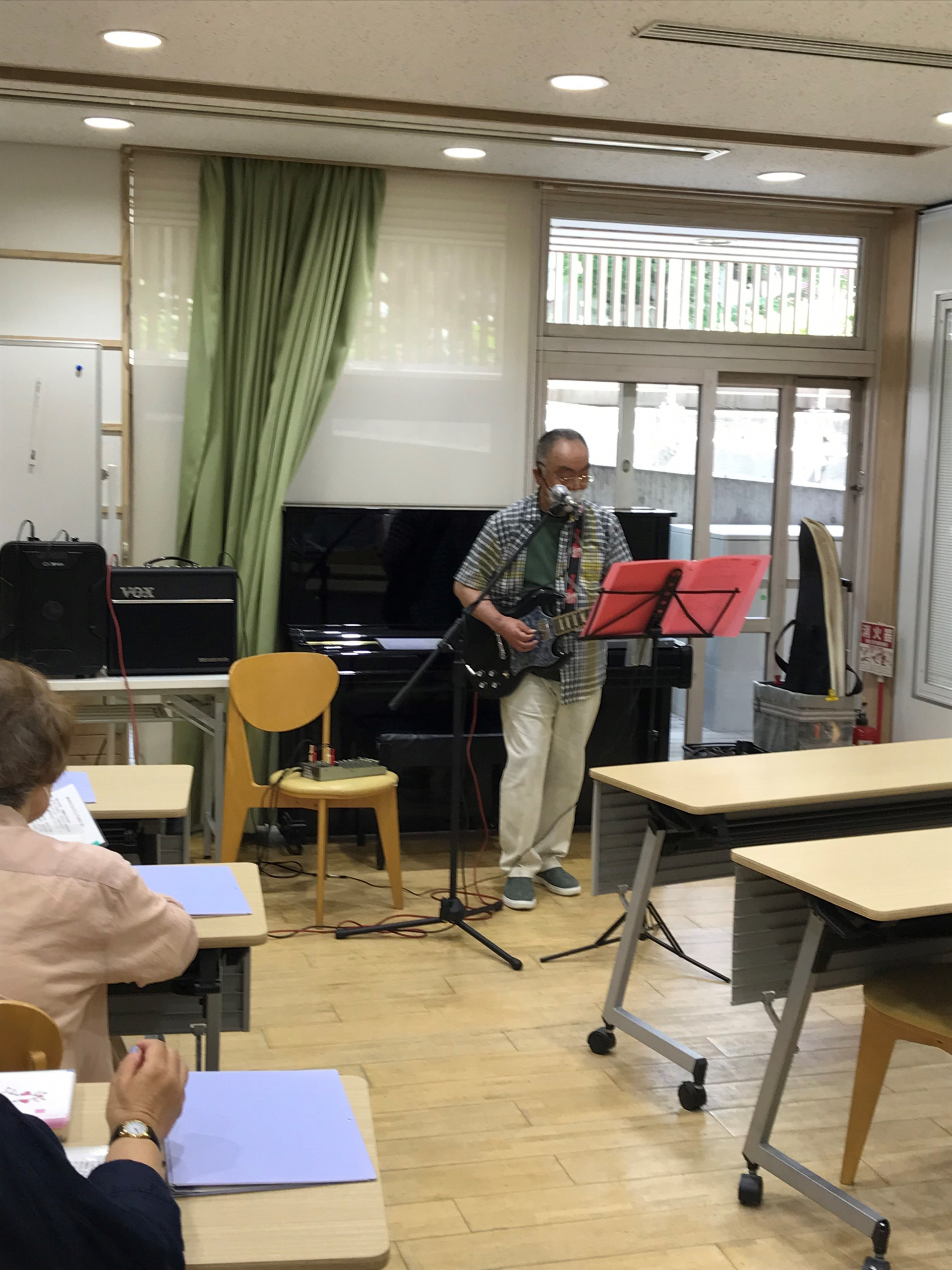 講師の弾くエレキギターに合わせて、毎回14曲ほどを歌いあげます。
