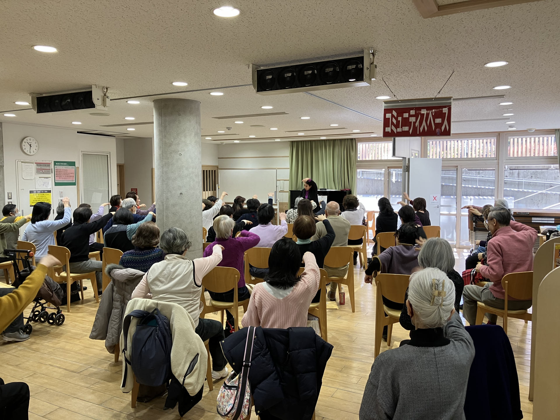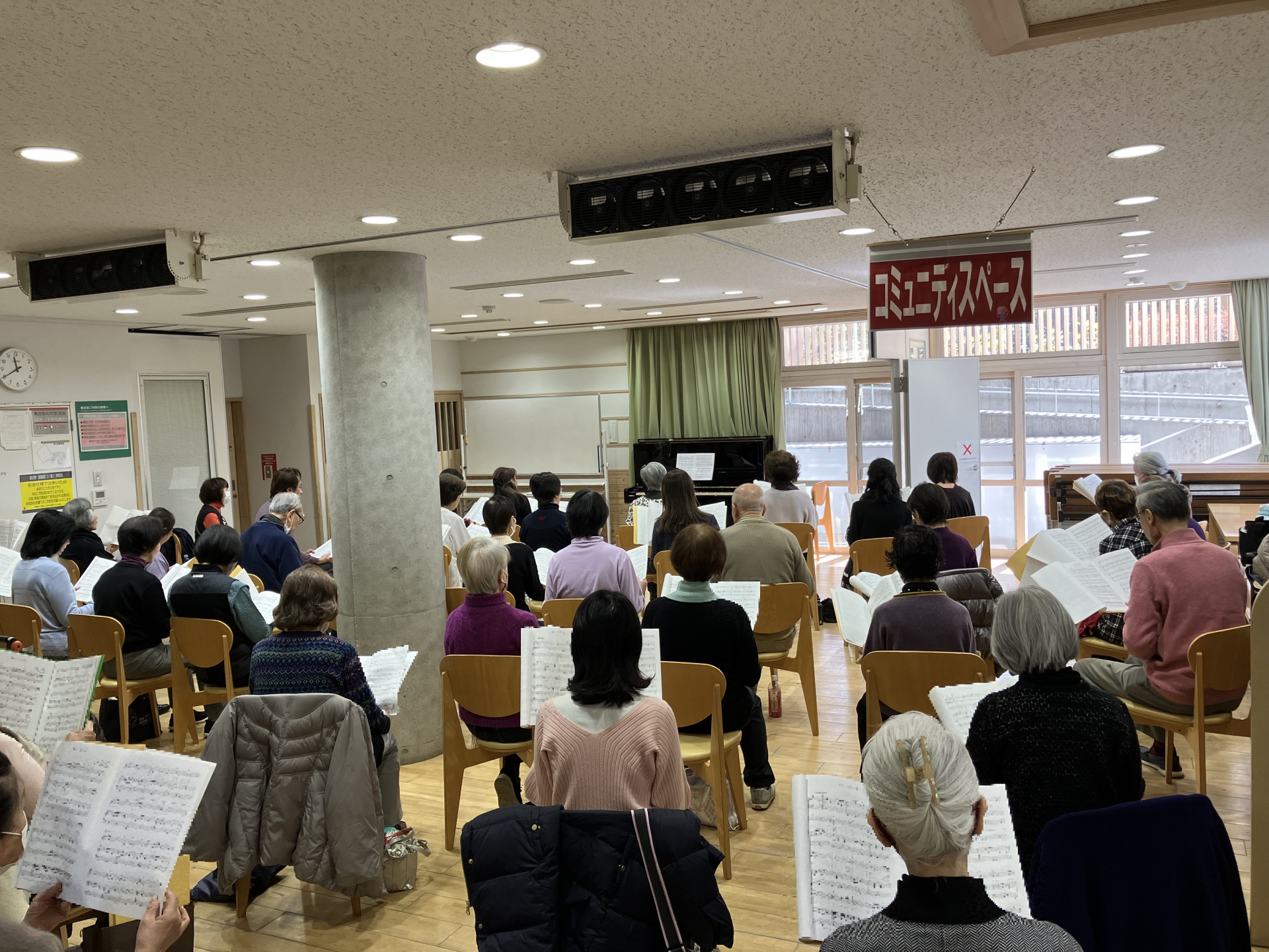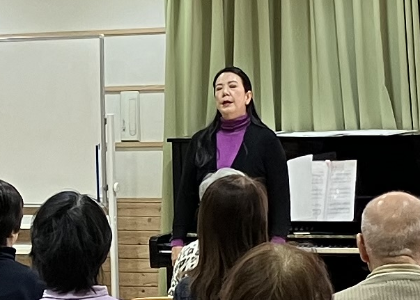 後半は先生がピアノを弾きながらみんなで歌唱レッスン。人数が多いこともあって、素晴らしい歌声がホールに響き渡りました。みなさんも大満足のご様子でした。