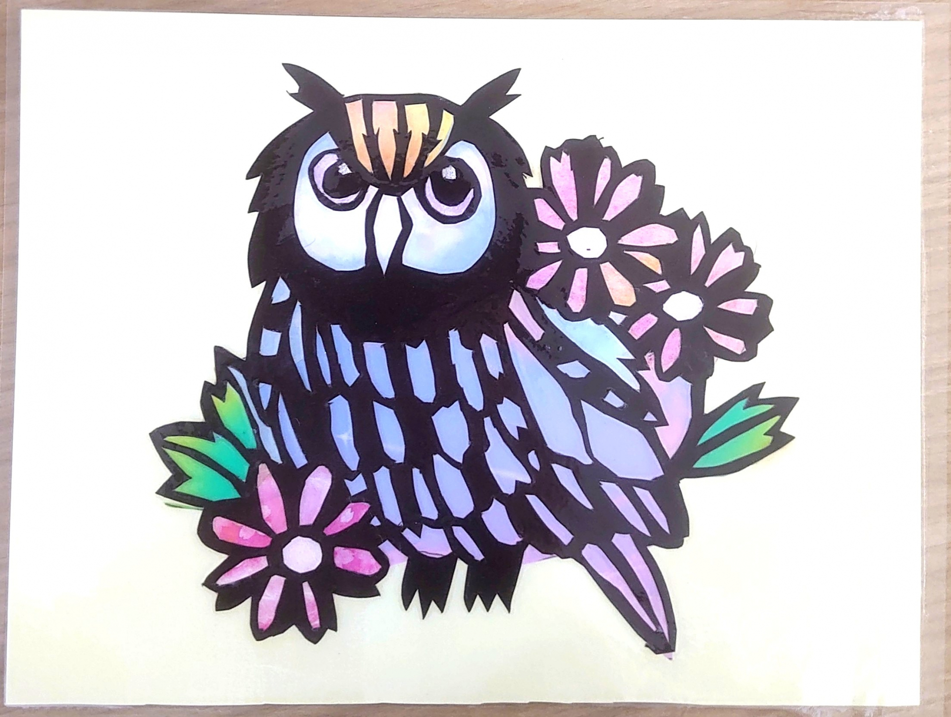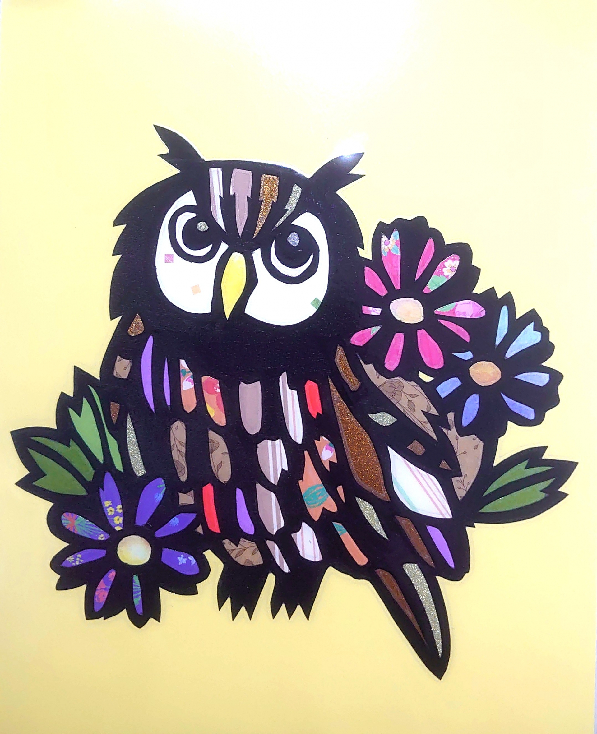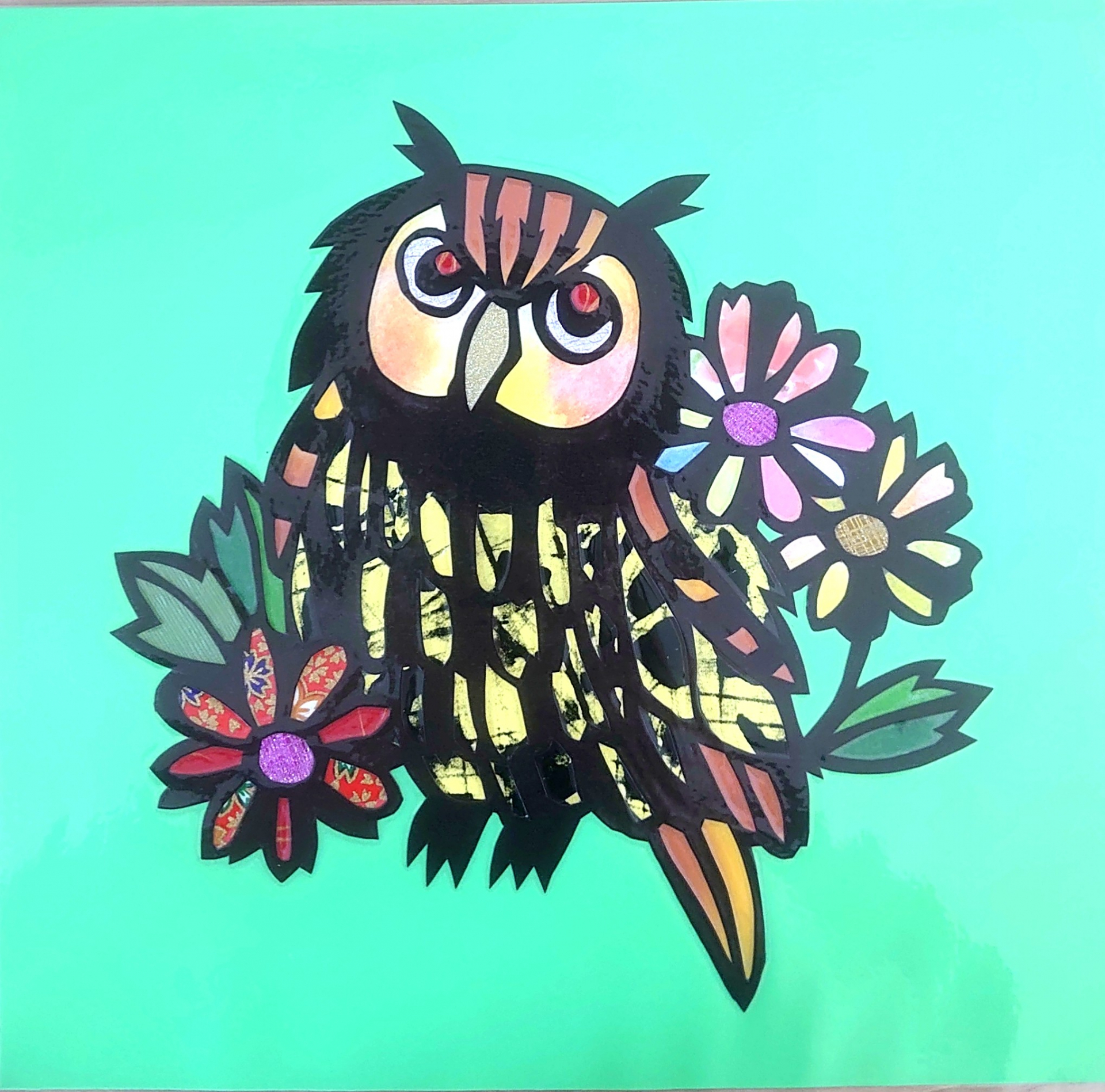 カラフルな羽を持ったミミズクが完成しました。