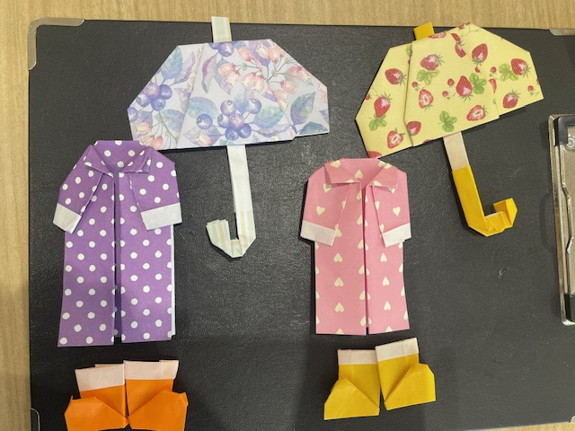 カラフルで可愛いらしいレイングッズを折って気分転換はいかがでしょう。