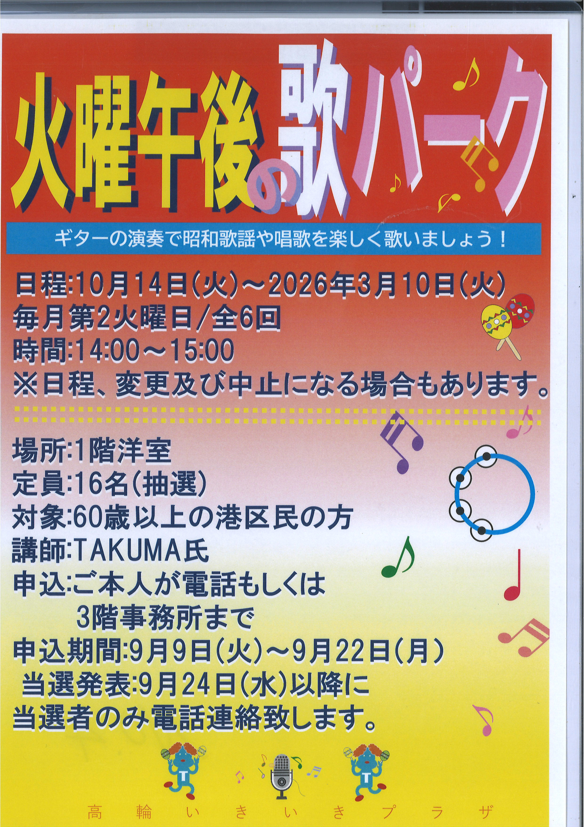 2025.09.10 ニュース 火曜午後の歌パーク Tweet シェアする 前の記事 2025.09.10 ニュース ビリヤード教室B 次の記事 2025.09.10 ニュース フラダンス講座 一覧へ戻る