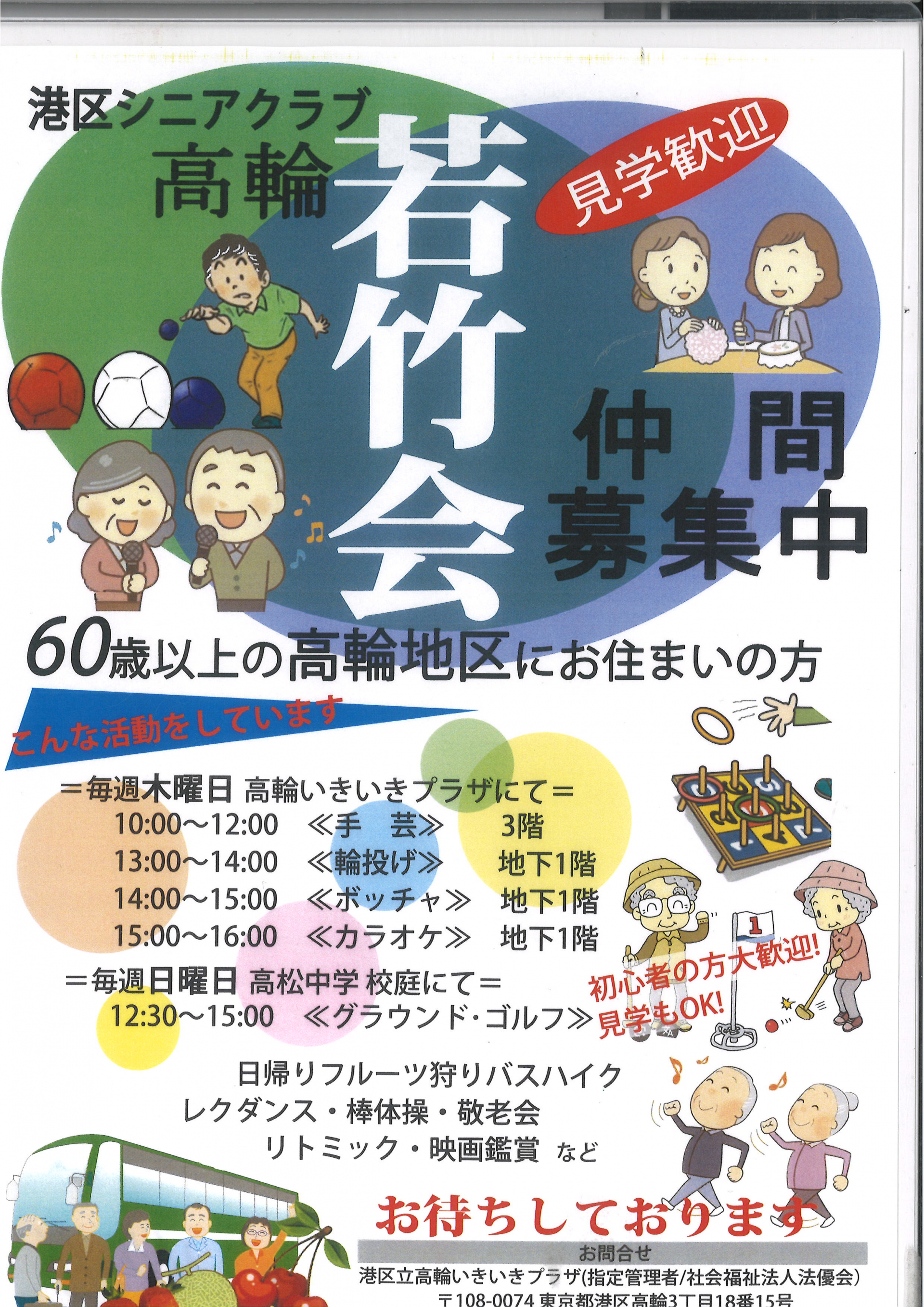 2025.09.29 お知らせ 港区シニアクラブ「若竹会」仲間募集中 Tweet シェアする 前の記事 2025.09.29 お知らせ ほのぼの作品展 開催のお知らせ 次の記事 2025.09.29 お知らせ 脳内で働く神経・免疫細胞間コミュニケーションとは? 一覧へ戻る