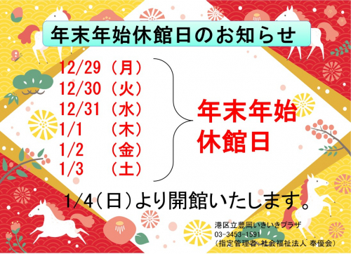 2026.01.08 ○看護師講話に参加してみませんか○ お知らせ #豊岡いきいきプラザ #1月のイベント #健康 2026.01.08 ○Y職員日記○ お知らせ #豊岡いきいきプラザ #職員日記 2026.01.07 ○詐欺にご注意!○ お知らせ #豊岡いきいきプラザ #消費者トラブル 2026.01.07 ○Y職員日記○ お知らせ #豊岡いきいきプラザ #職員日記 2026.01.06 ○豊岡川柳クラブ開催日程変更のお知らせ○ お知らせ #豊岡いきいきプラザ #豊岡川柳クラブ 2026.01.06 ○Y職員日記○ お知らせ #豊岡いきいきプラザ #職員日記 2026.01.05 2026年もよろしくお願い申し上げます お知らせ #豊岡いきいきプラザ #仕事初め 2025.12.28 年末年始のお知らせ お知らせ 2025.12.27 ○絵手紙教室作品掲示○ お知らせ #豊岡いきいきプラザ #絵手紙講座 #絵手紙教室 2025.12.27 ○Y職員日記○ お知らせ #豊岡いきいきプラザ #職員日記 2025.12.27 新年を迎える準備はお済みですか? お知らせ #豊岡いきいきプラザ 2025.12.26 ○Y職員日記○ お知らせ #豊岡いきいきプラザ #職員日記 2025.12.26 ○本日午後からの講座○ お知らせ #豊岡いきいきプラザ #カラオケフライデー 2025.12.25 ○Y職員日記○ お知らせ #豊岡いきいきプラザ #職員日記 2025.12.25 ★豊岡だより1月号★ お知らせ #豊岡だより1月号 #豊岡いきいきプラザ 1 2 3 4 5 … 54