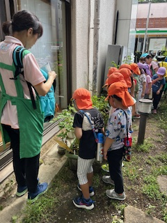 先日、すくすく育ったオクラをご紹介しましたが、9/11に三田五丁目太陽の子保育園の園児たちが収穫に来館されました。