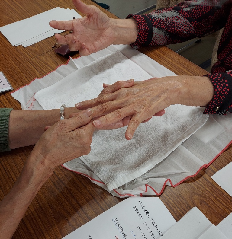 手だけでなく心もほぐすトリートメント。講師としても、皆さんの笑顔で癒されました。