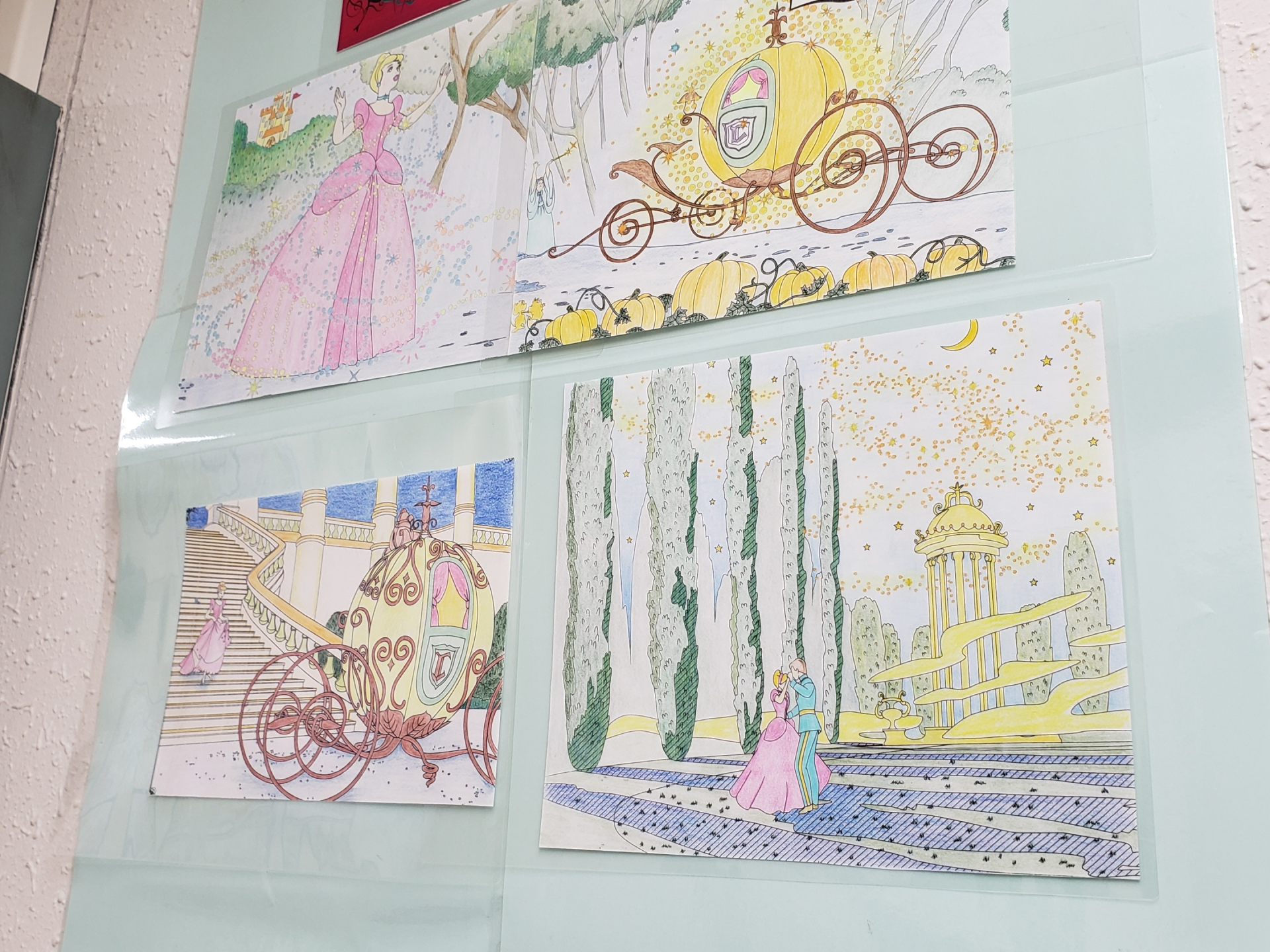 出来上がったぬりえが、当館廊下に掲示されております。ひとりで集中する時間が欲しい方は是非お越しください!