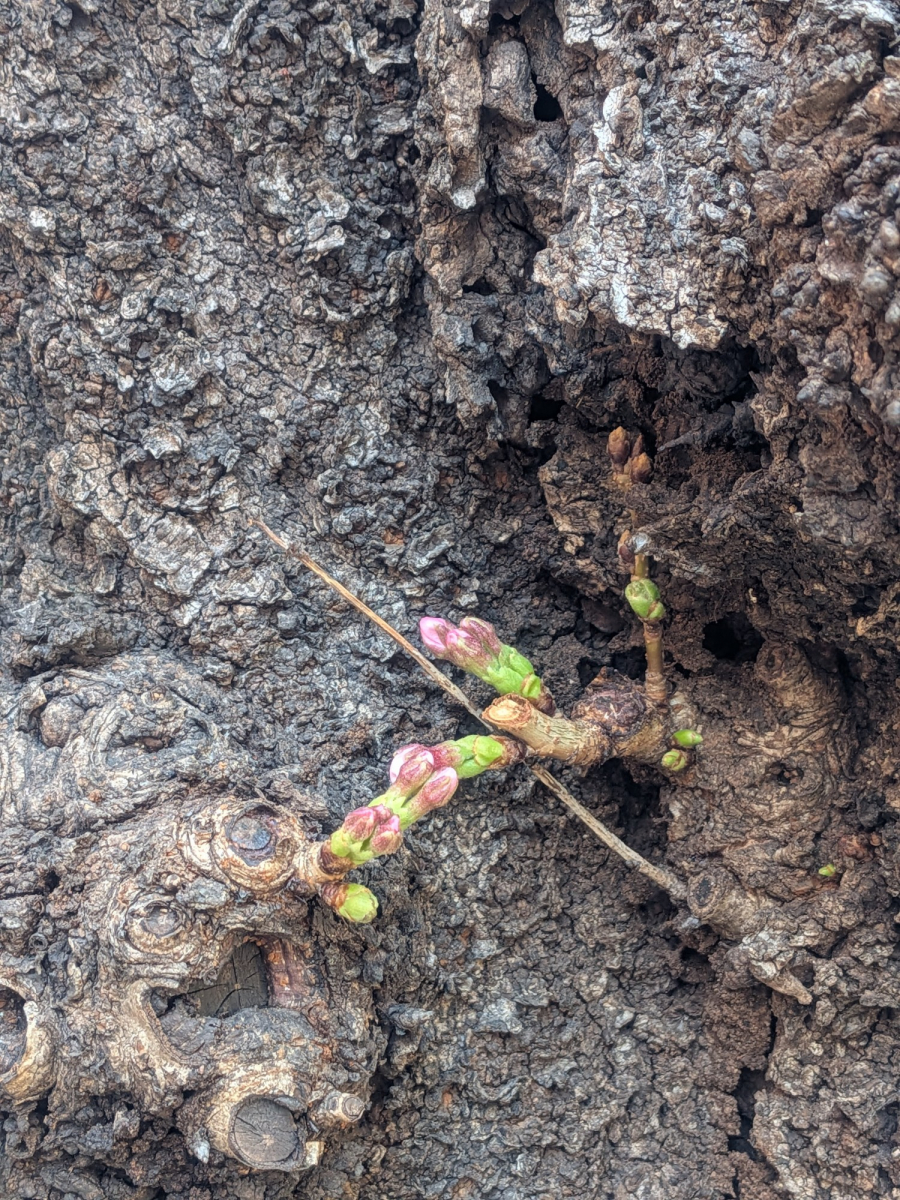 そう、桜の開花です。 ちなみに当館付近の桜ですが、ようやく蕾がふくらんできた感じ。でも中には・・・