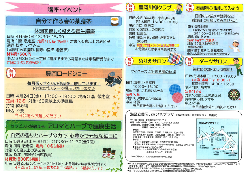 「春の薬膳茶」や「アロマとハーブ」など心が豊かになるような講座も準備しております!