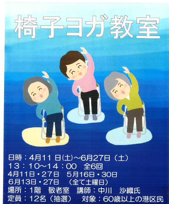 豊岡いきいきプラザでは「椅子ヨガ教室」の参加者を若干名募集しております☆