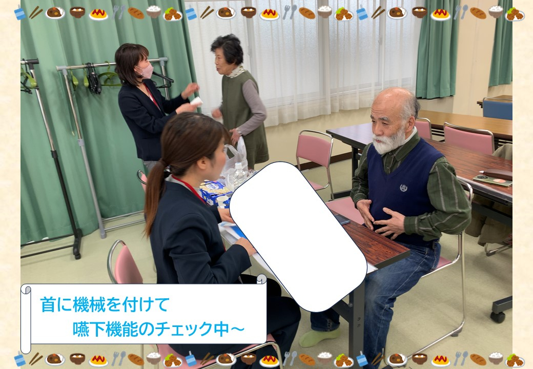 お話のあとは、明治様のご厚意で「嚥下機能のチェック」をしていただきました!